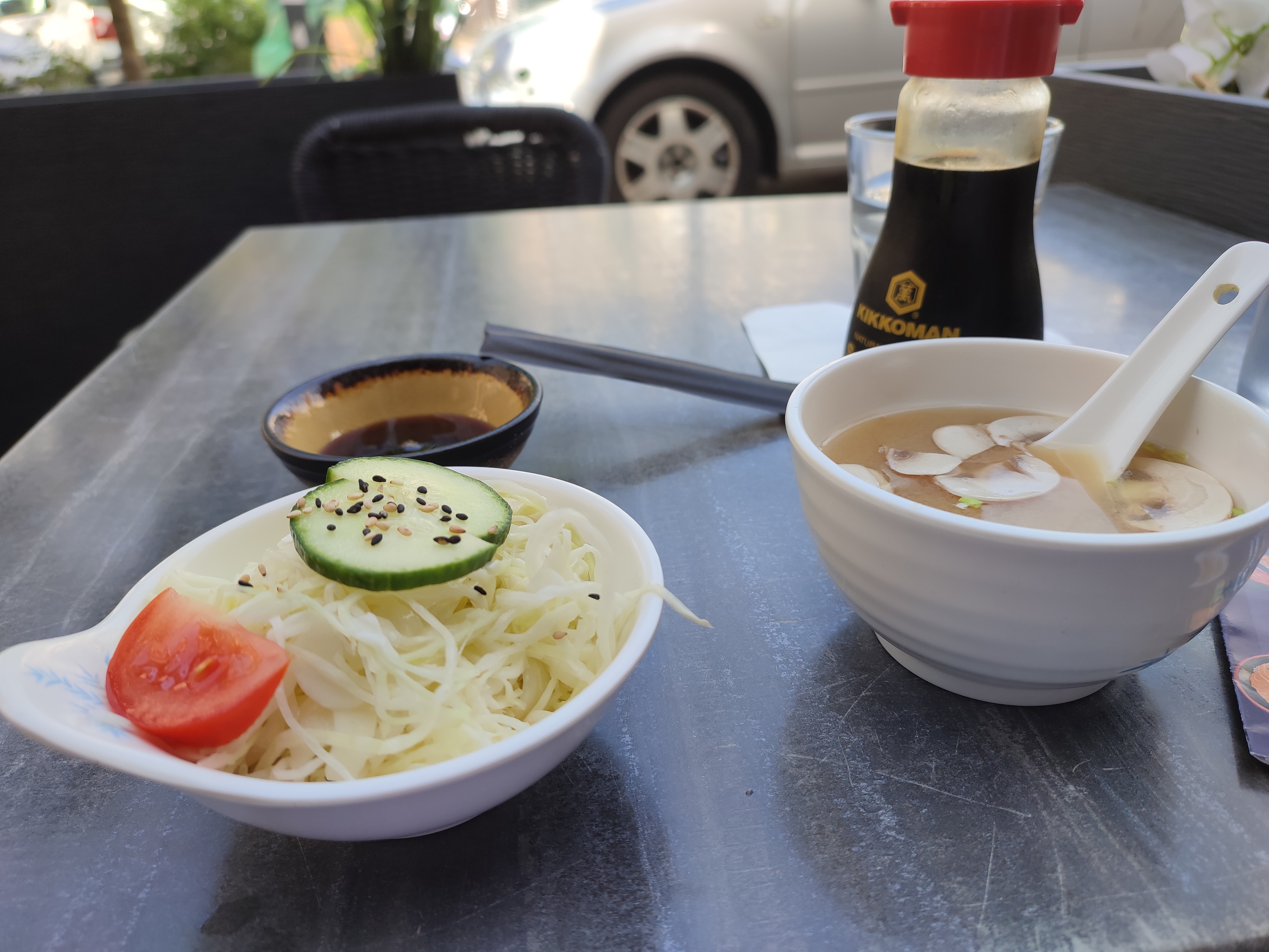 Déçu... Gras et trop sucré.... Soupe pas bonne, trop grasse. On dirait une soupe de bouillons kub avec 2 morceaux d'algues qui ce cour après. La petit salade à base de chou, etait trop sucré impossible de la manger. Mini makis correct mais bouratif et écœurant sur la fin. Tout sa pour 14€50 prix trop cher.