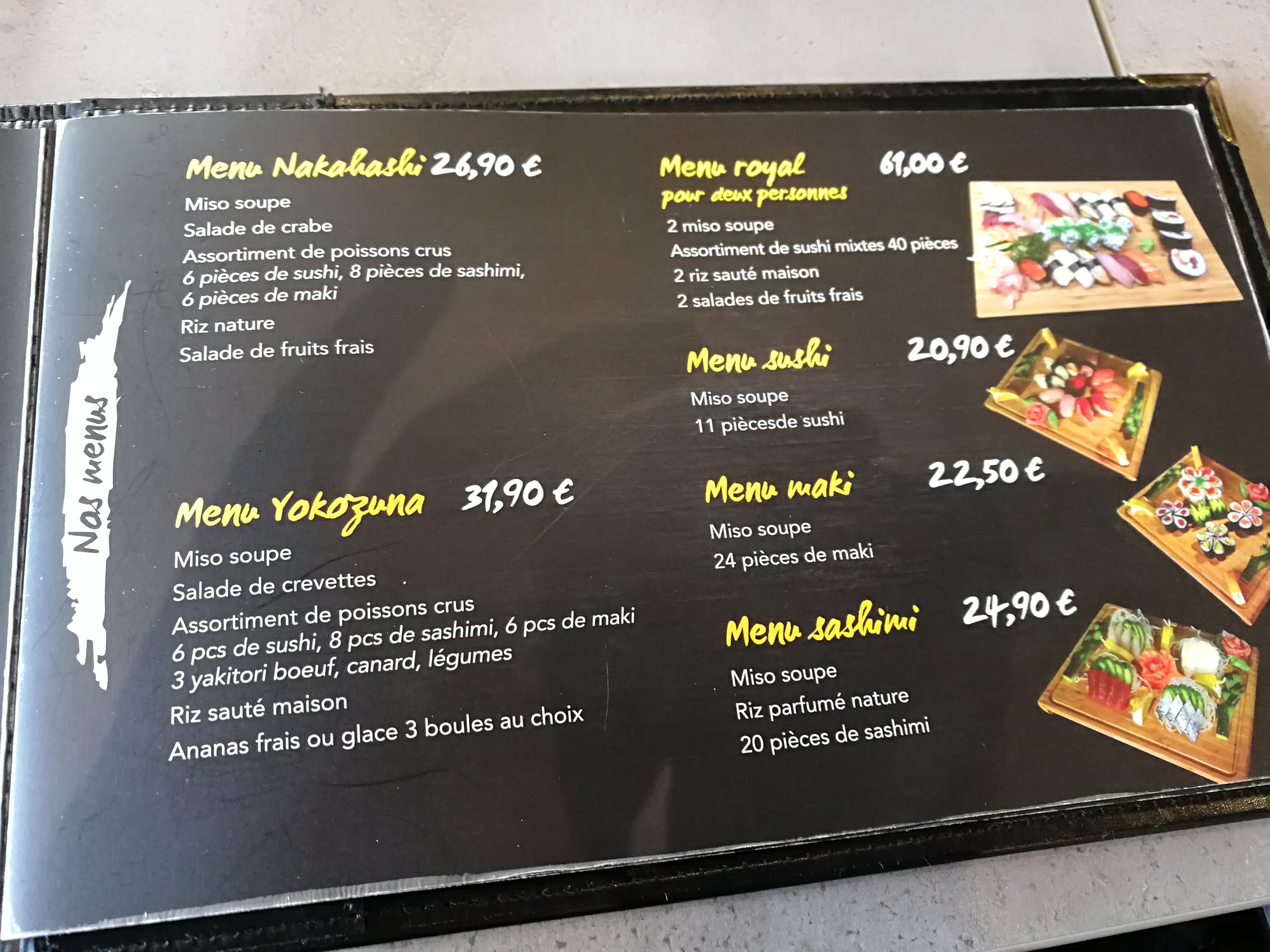 Posté le 26/01/2023 à 10:41"Excellent restaurant ou nous allons de temps en temps. L accueil et le service sont très chaleureux et très professionnel. La salle est très zen. Large choix de spécialités japonaise avec des produits frais et cuisinés au moment dans une cuisine ouverte sur la salle. Possibilité de plats à emporter. Très belle expérience. Nous recommandons absolument ce restaurant."