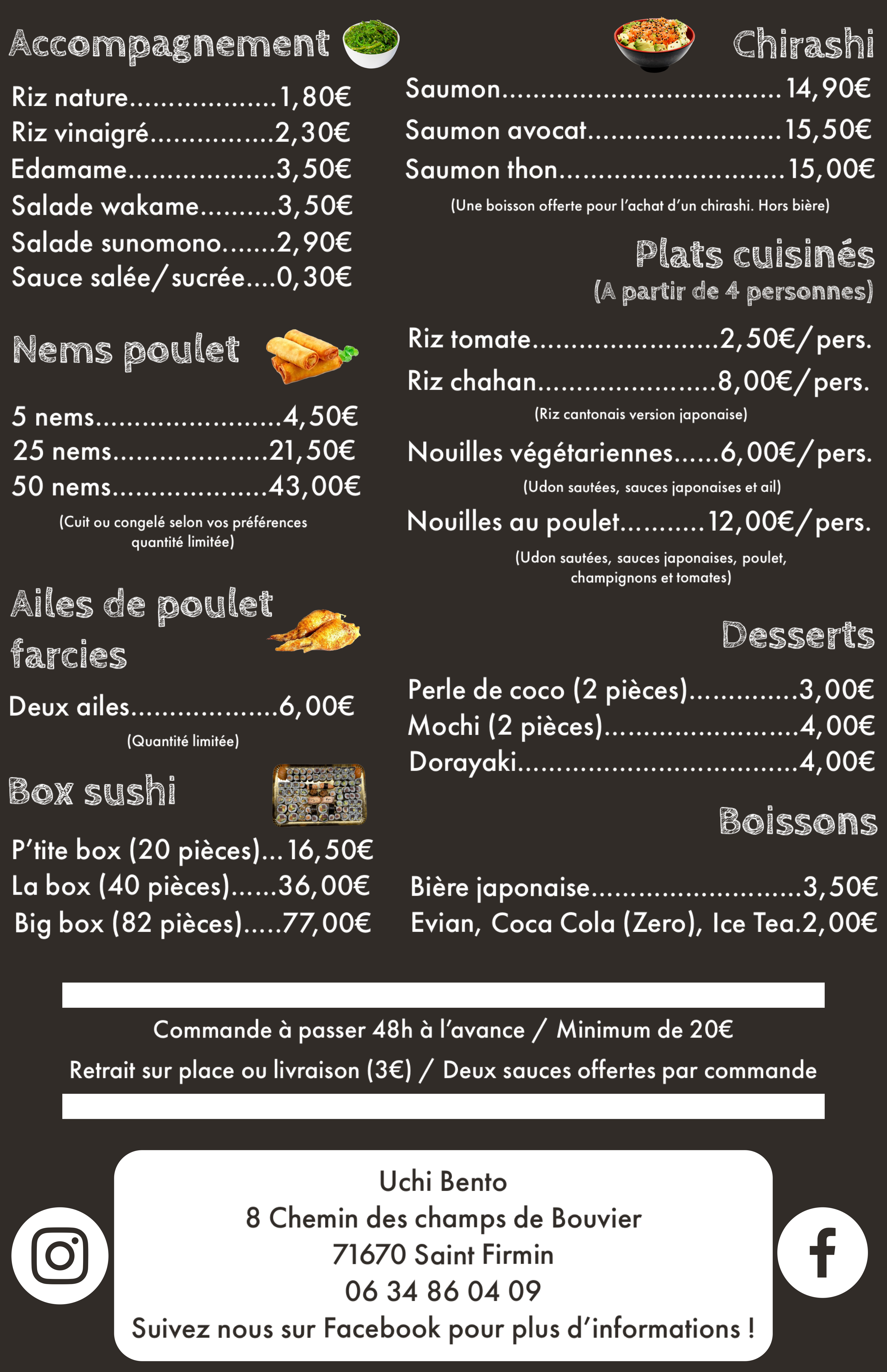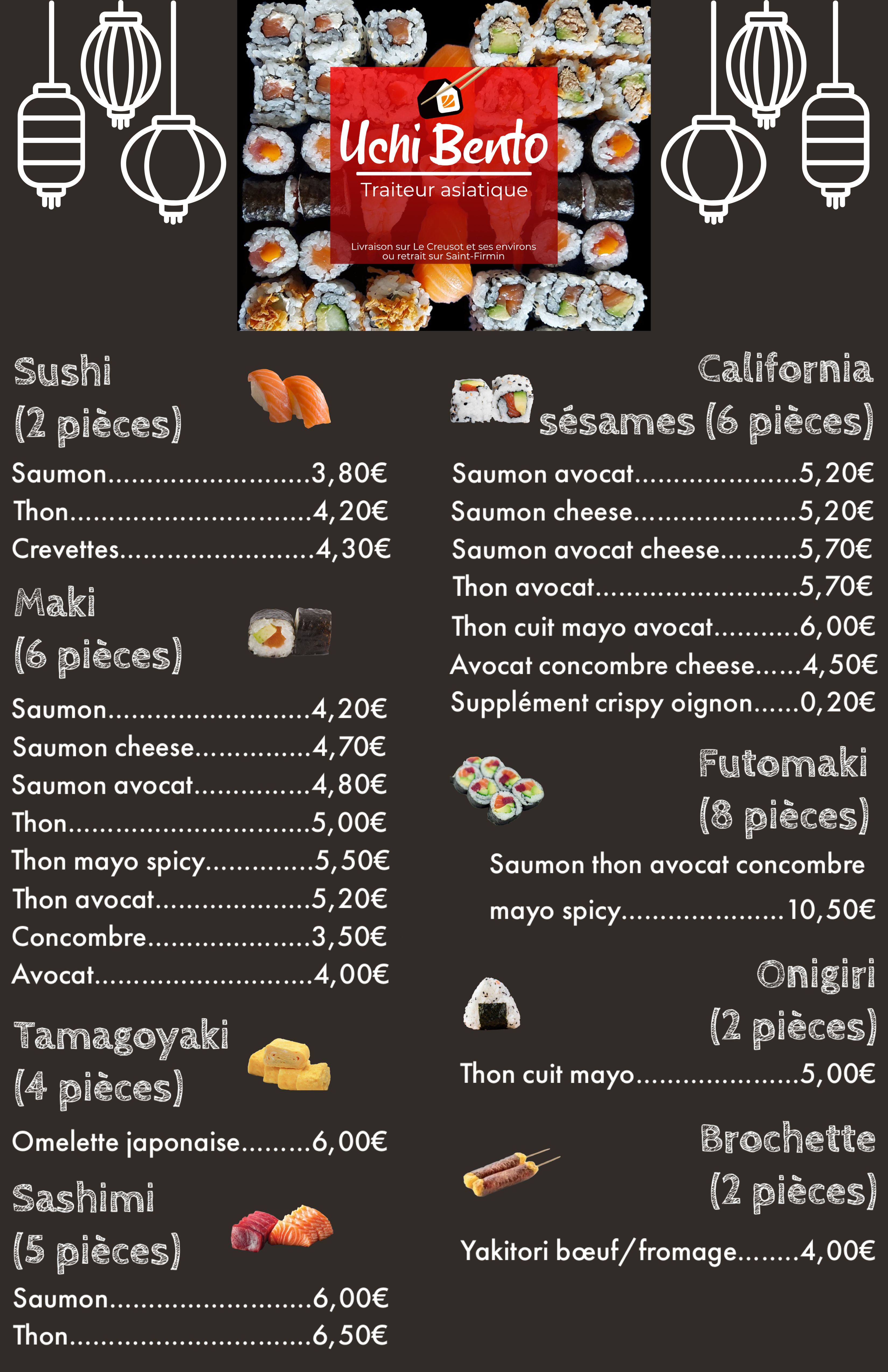 Un régal, je vous recommande les sushis de UCHI BENTO. Super sympa, et à coté de chez moi, je vous recommande d'y aller ou de vous faire livrer :) En tout cas moi j'y retournerai !