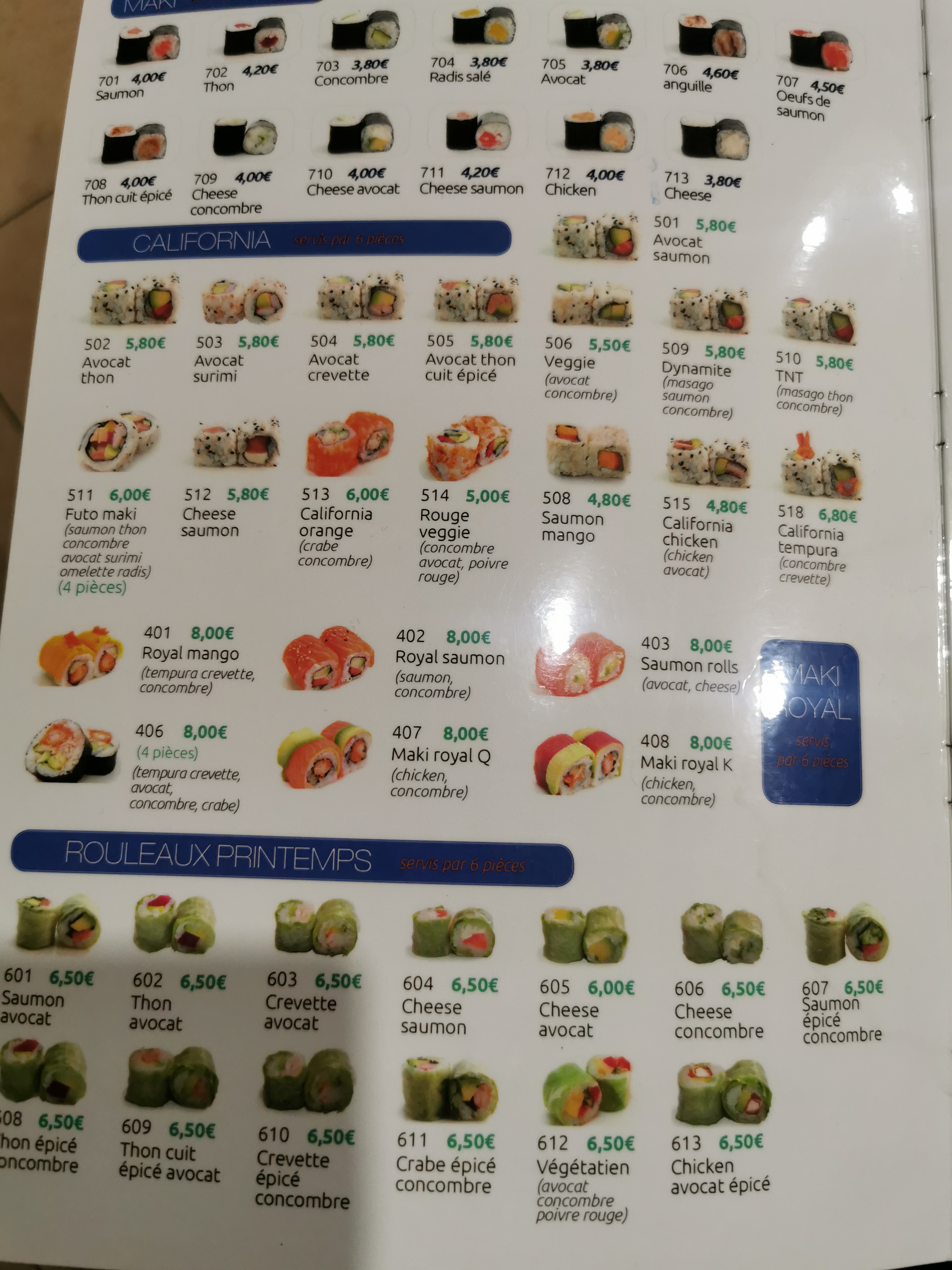Première commande, les produits sont frais et ont du goût, les prix sont très corrects pour la qualité. Les sashimis sont bien épais, vraiment foncez! J’y retournerai sans hésiter, on s’est régalé :) Merci!