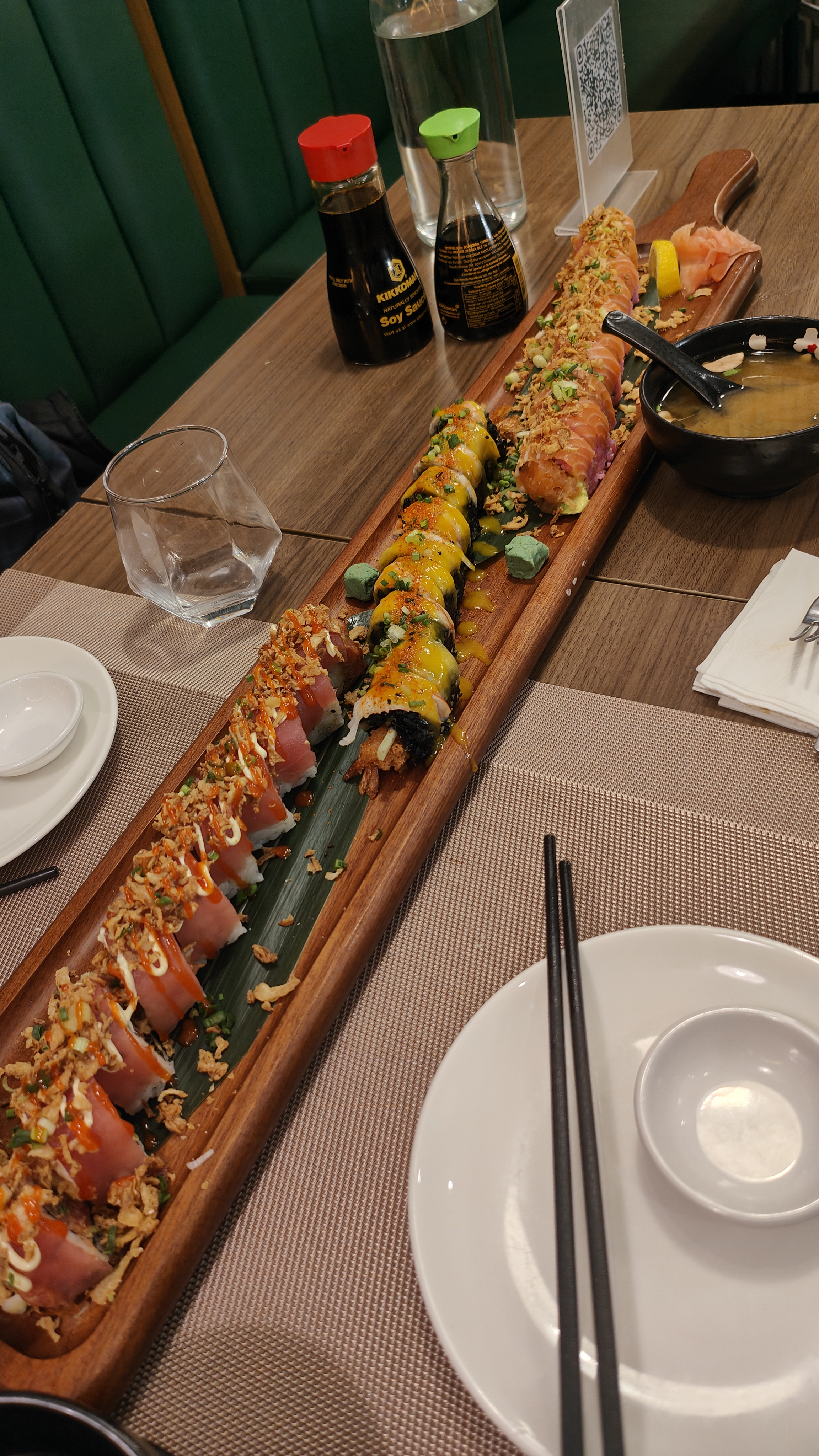 Parfait, les plats sont très bons, il y a une assez grande variété de sushis/makis/rolls, le personnel est très agréable