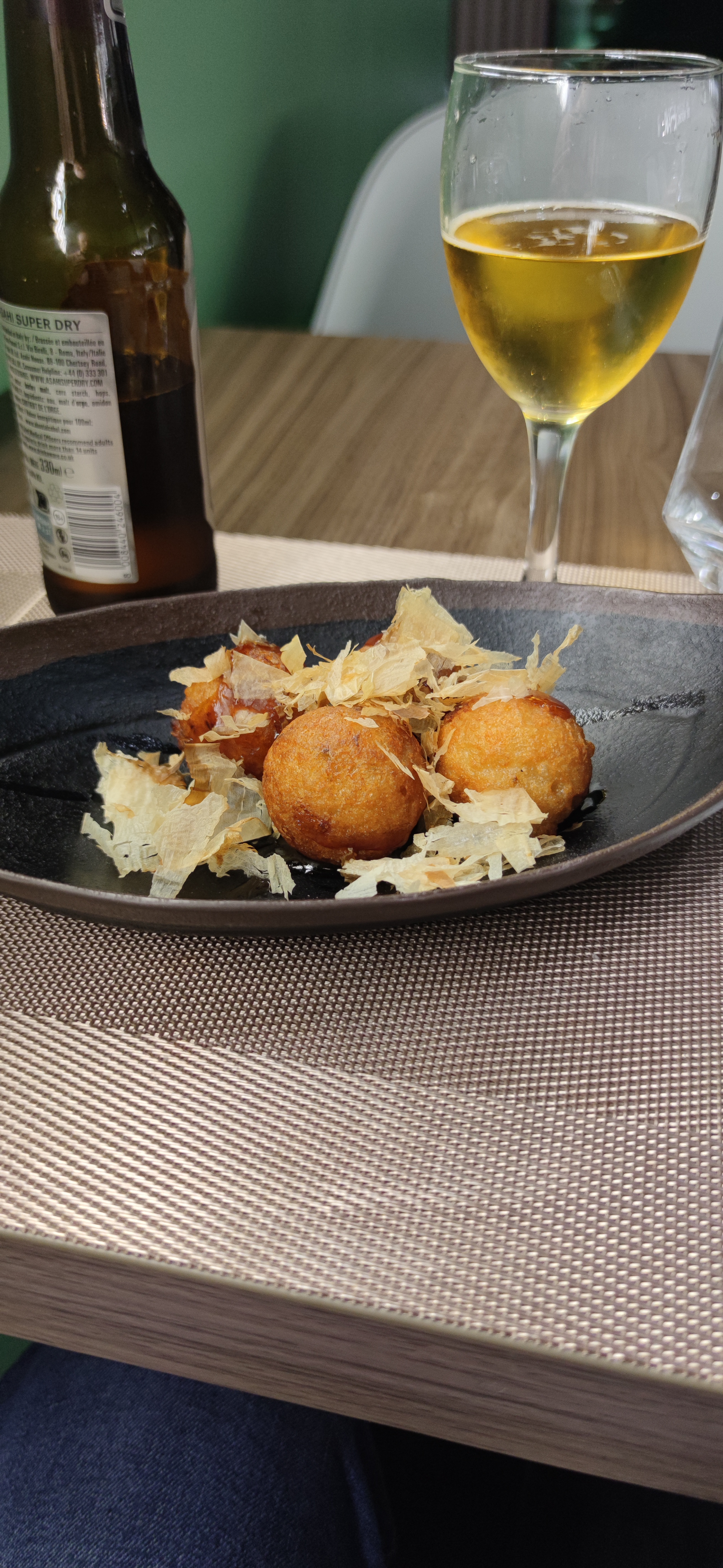 Première fois que je goûte des takoyakis, je n'ai vraiment pas été déçue ! J'ai également pris un pad thai aux crevettes, on y retrouve de nombreuses saveurs ! Service très agréable, ouvert au dialogue et à l'écoute. Salle agréable de par son agencement. Bœuf et poulet halal. N'ayant pas de photos, j'ai repris une photo de mon amie 😆