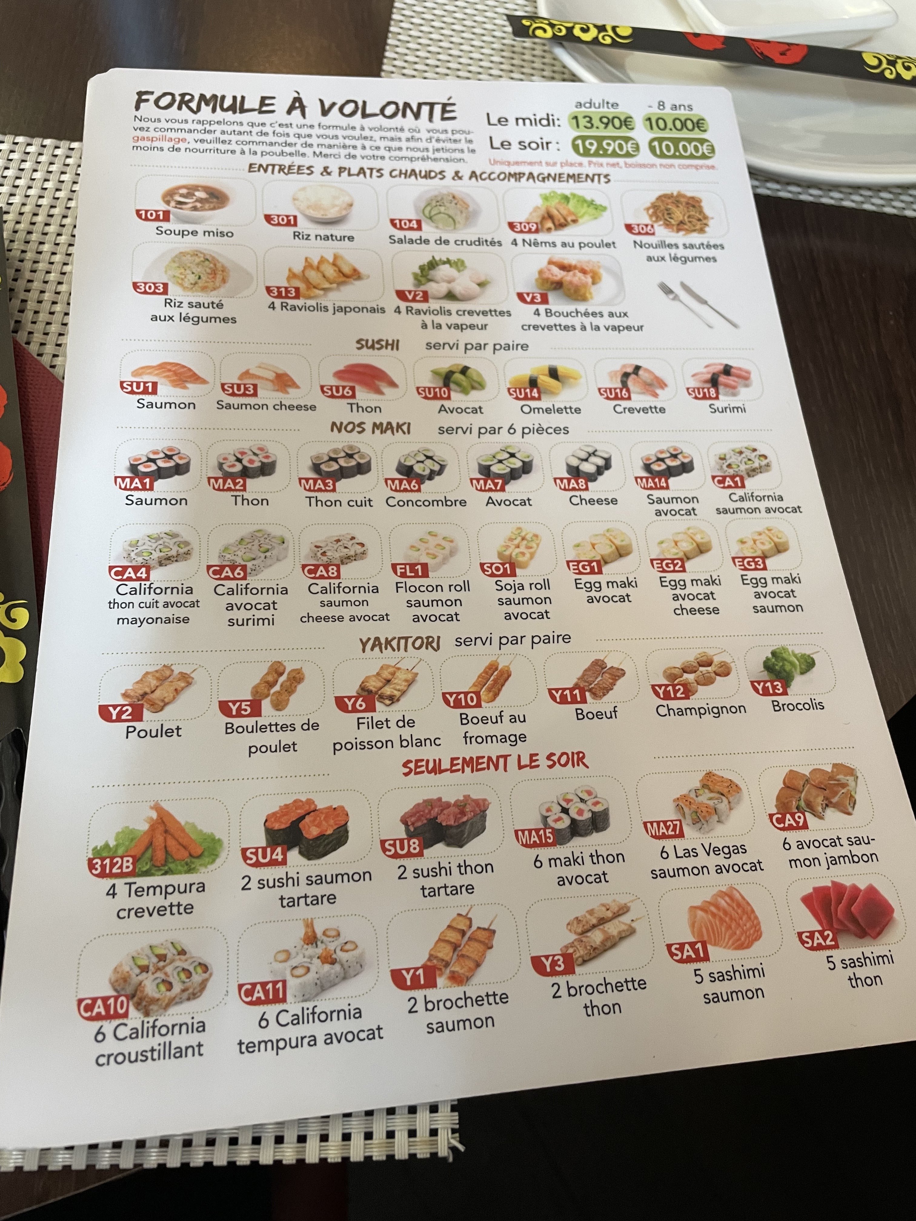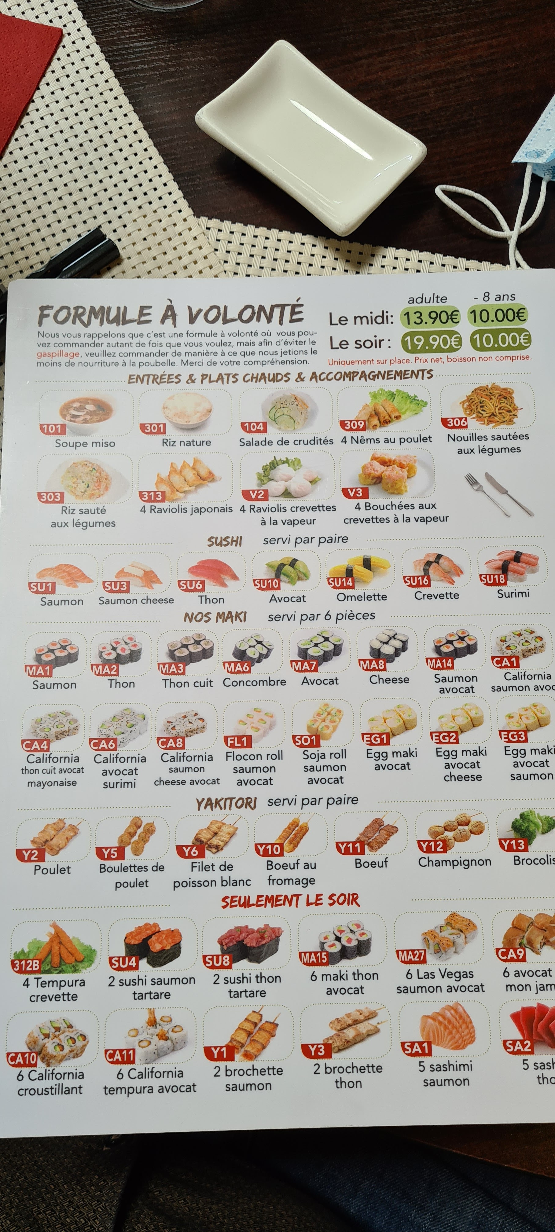 Restaurant japonais à volonté incroyable, c’est très bon, 13,90€ le menu en semaine, je conseille vivement !!!