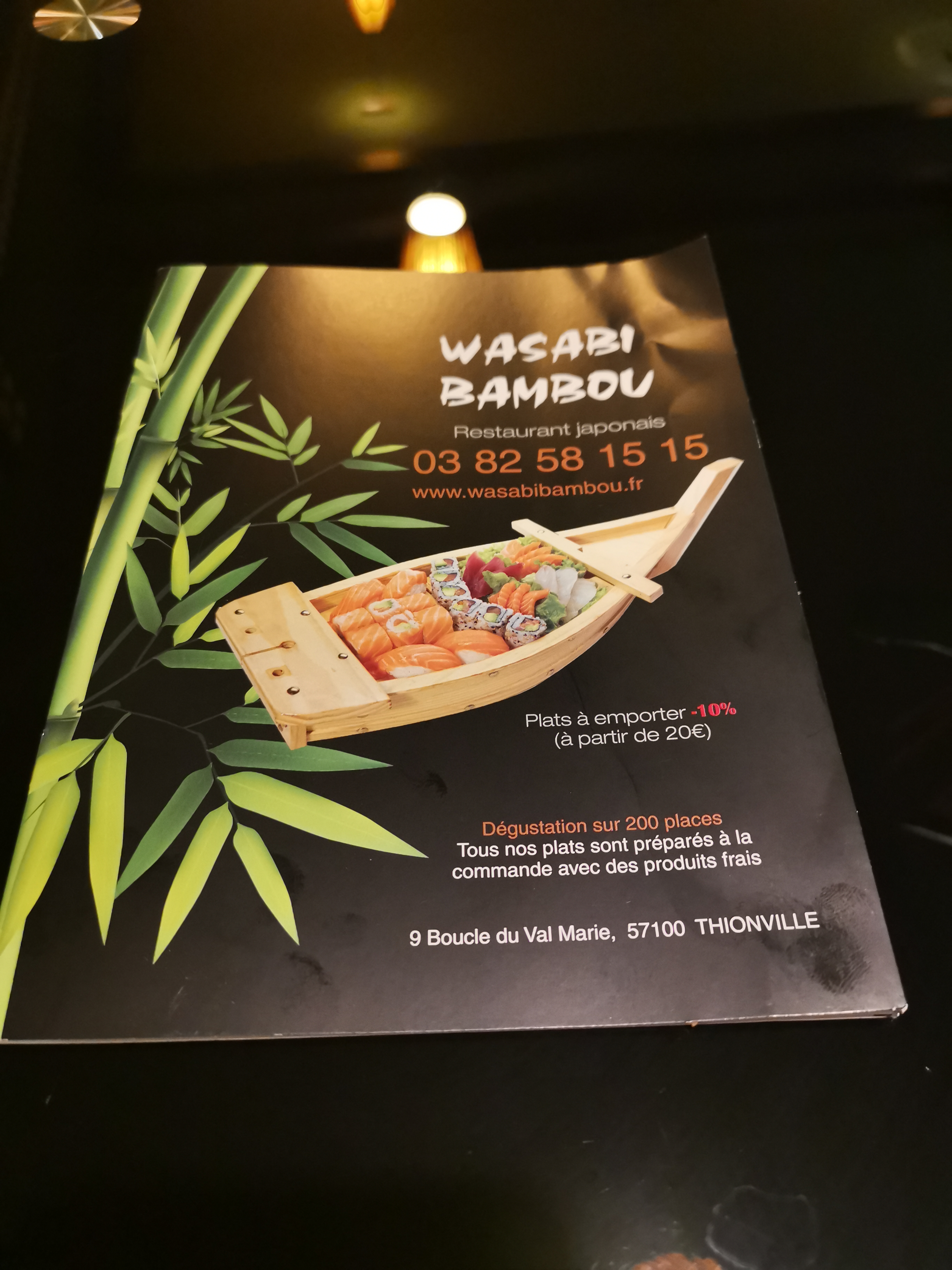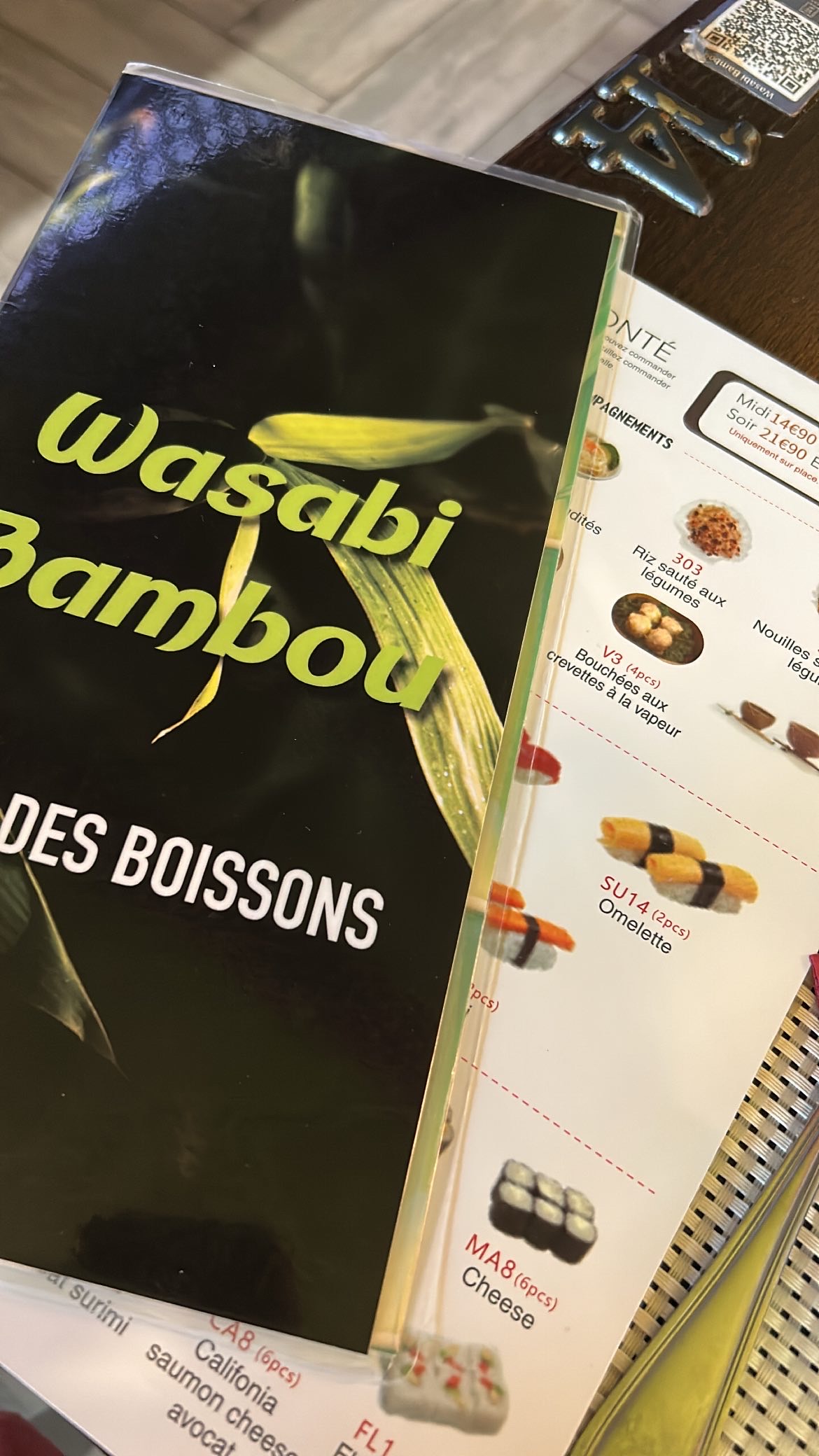 Je suis allez manger au Wasabi Bambou, j’ai passé un super moment et je me suis régalé. Service rapide, qualité des ingrédients.