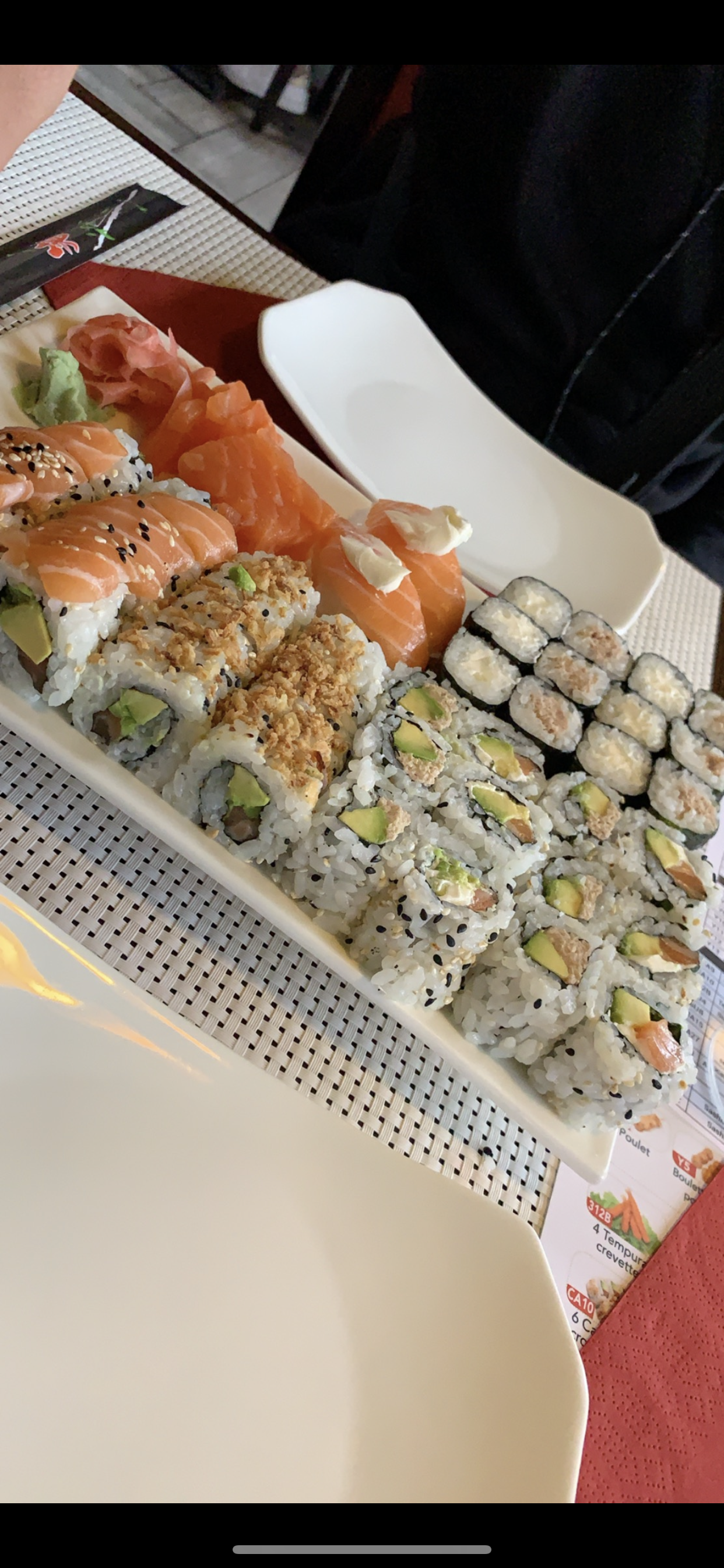 Les sushis sont excellent et fait sur demande, gros point fort du restaurant. Je recommande totalement. Je noterais juste que le personne n'est, selon moi, pas assez accueillant ni souriant.
