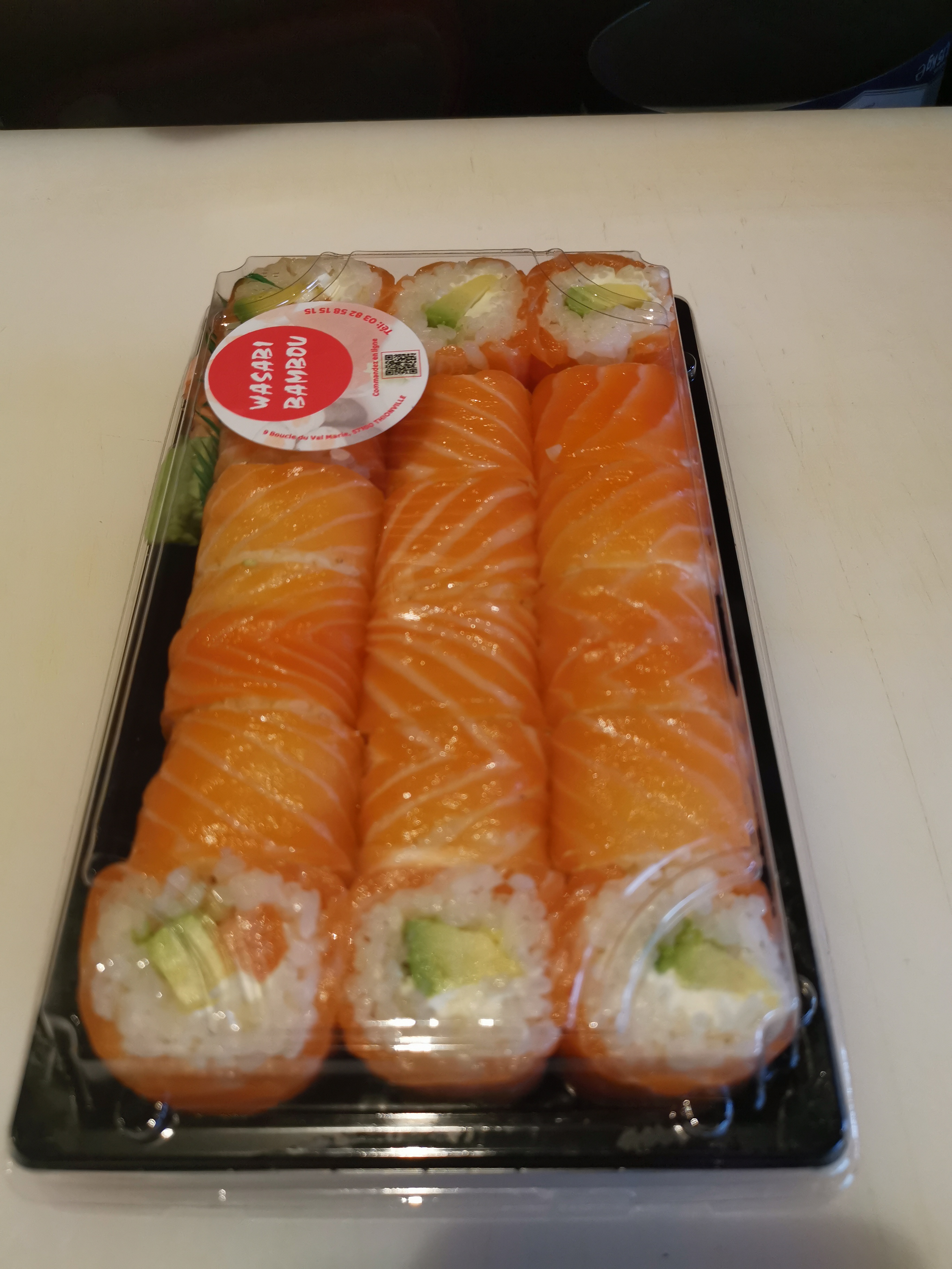 90% de riz pour 10% de saumon (voir photo). Allez prendre des sushis au Japon, c’est un univers à côté. Aussi, ils utilisent une tonne de plastique à CHAQUE commande et n’ont aucune intention de changer, bravo pour l’impact écologique.