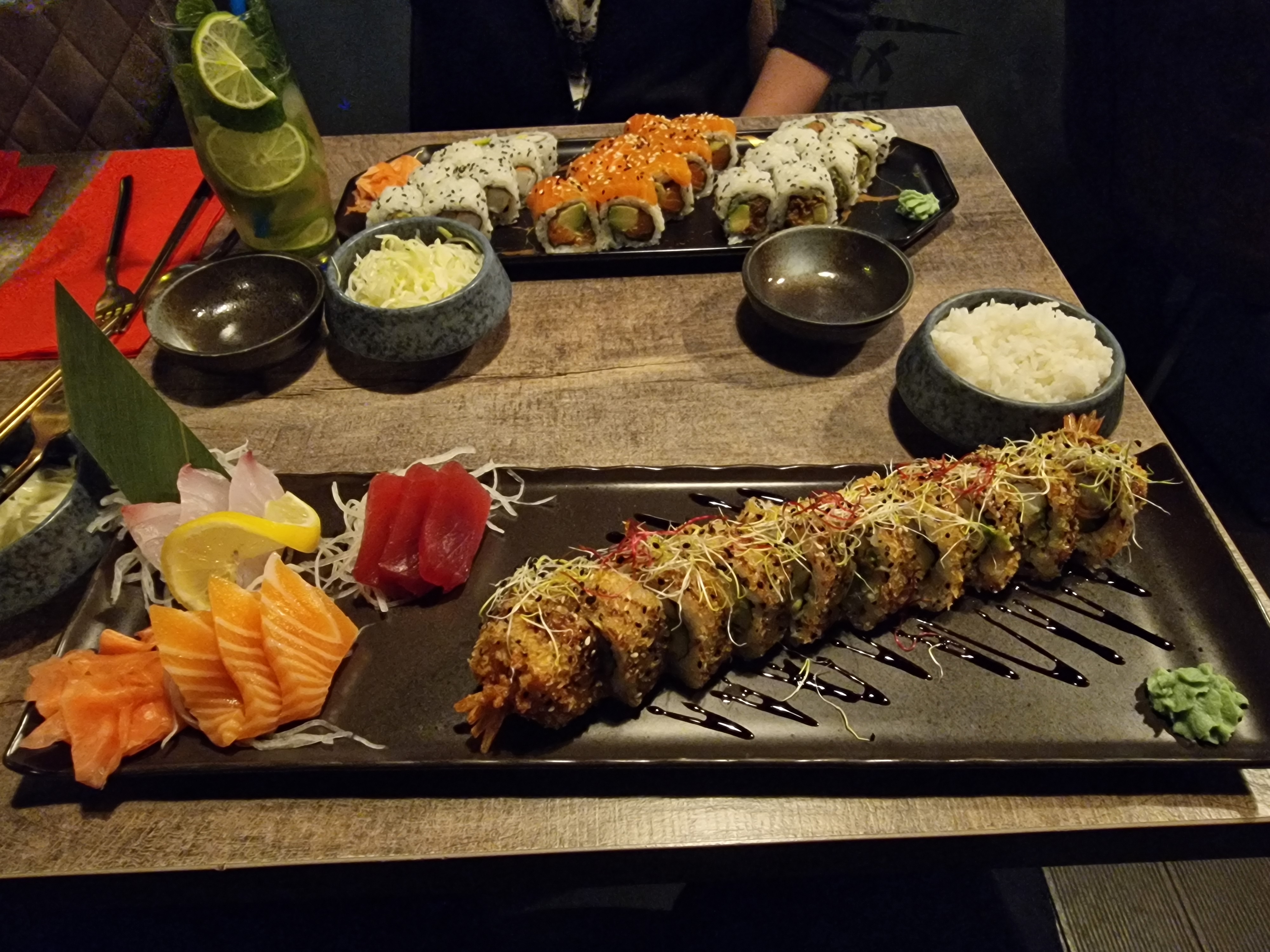 Service super, plats généreux, les sashimis qui en général sont petits, là ils sont bien épais et savoureux ! Produits frais et preparer sur place ! Petit plus , des petites actions pour notre environnement ;) et ça c'est appréciable ! Je recommande +++