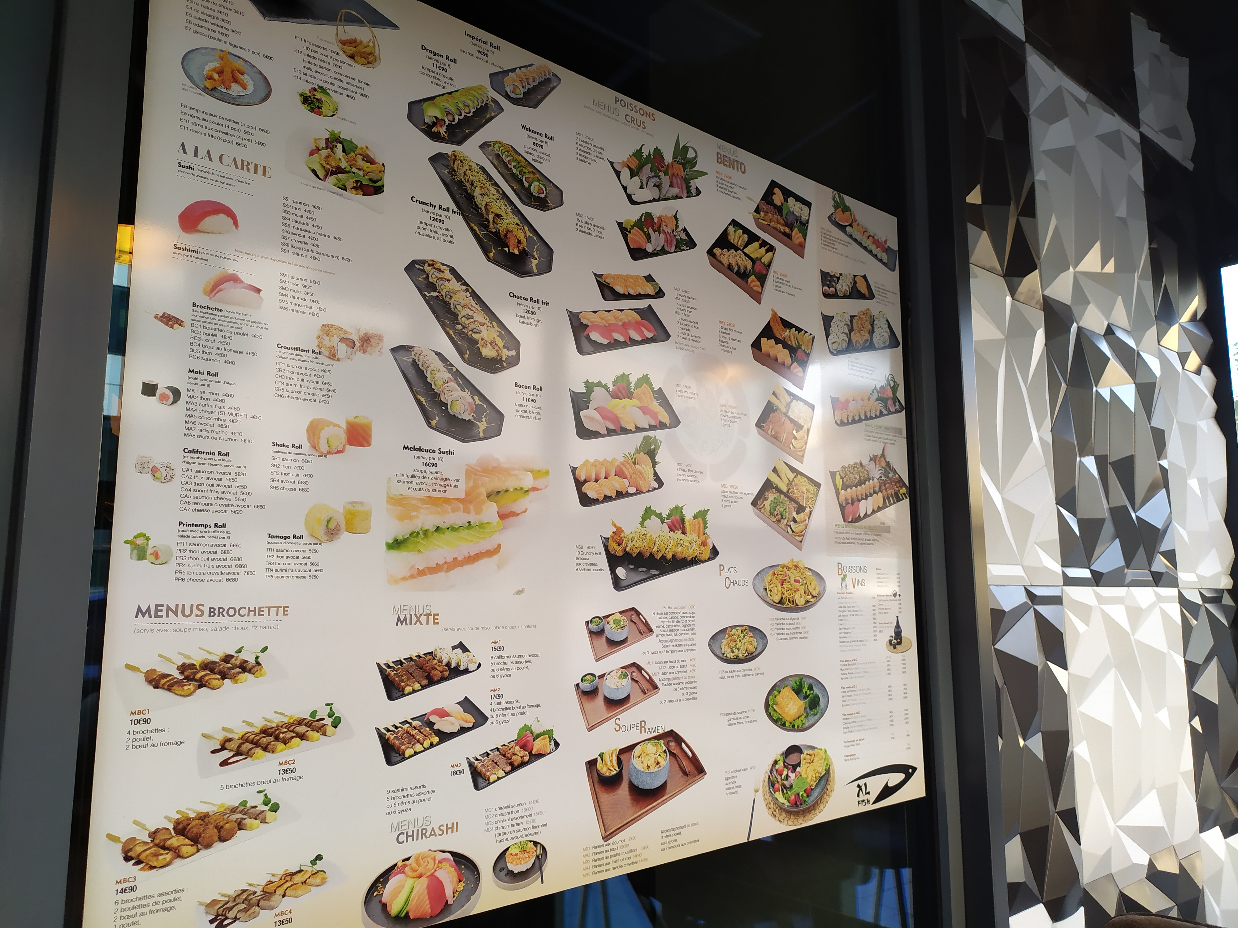 Xl Fish à Antony, c'est un carton ! le plateau Bento 5 était appétissant : du boeuf aux oignons, des nouilles chinoises, des nems et des ravioles avec une sauce spécialement pour les nems ! Un vrai délice ! les mangues étaient mures. C'est la première fois qu'un resto japonais propose des plats asiatiques ! En tout cas c'est bien servis et le rapport qualité prix est correct. Le livreur a été correct !