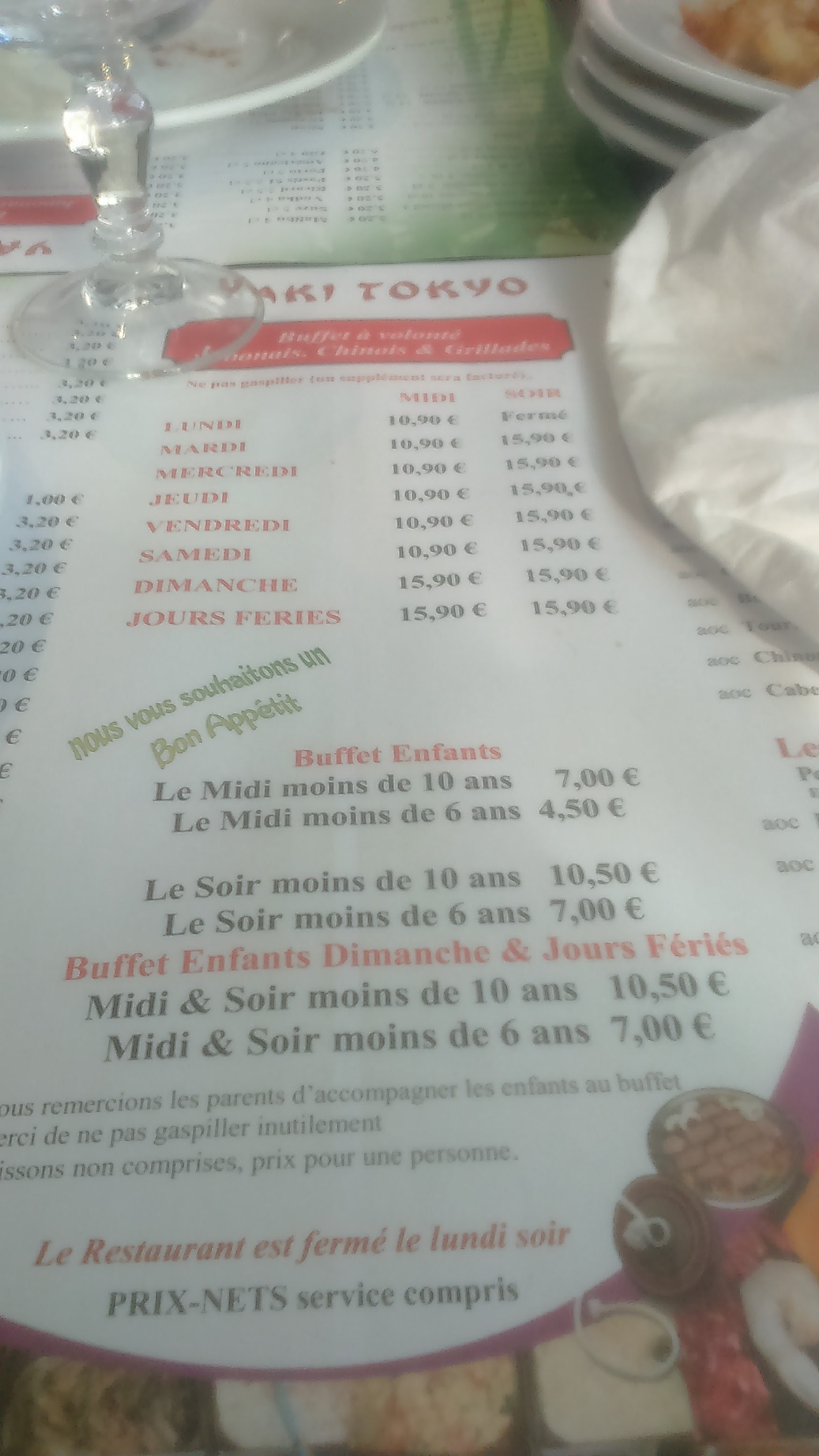 Le restaurant est toujours à volonté mais on est servis à table. J’ai adoré 😊.