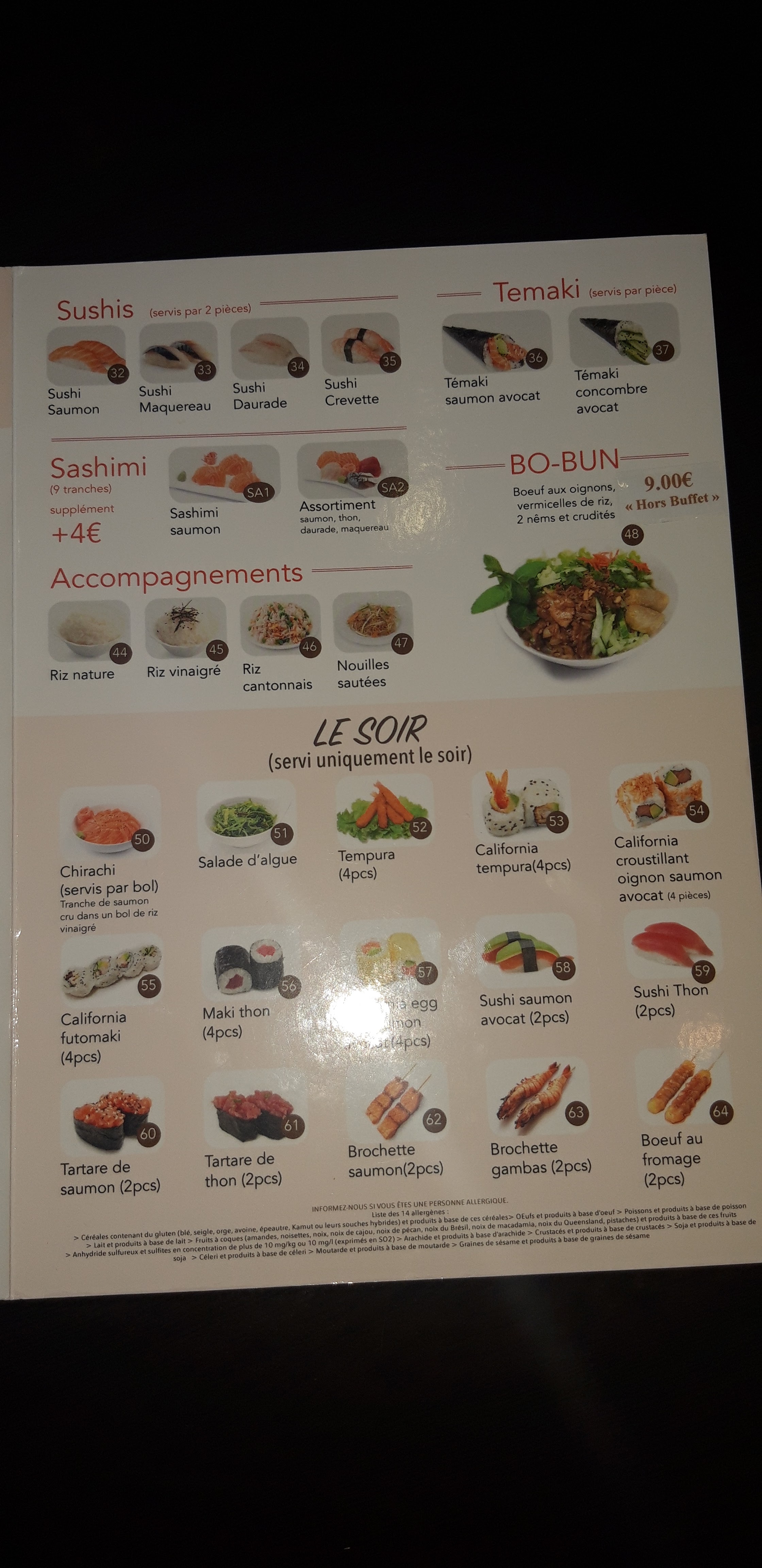 Je mets une étoile parce je suis bien obligé pour écrire ce commentaire ! Pour commencer la moitié de notre commande n’as pas été amené et quand nous le faisons remarquer on viens nous demander à multiples reprises si on ne sait pas tromper comme si on avait pû oublier ! ( ne pas oublier que c’est censé être à volonté) Les sushis ATTENTION immangeable un plateau entier et pas un seul qui as bon goût et pour la surprise le fromage des sushis à fortement goût à une espèce de St Moret bas de gammes. N’oubliez pas d’éviter le wasabi qui as un affreux goût de patte à modeler ! Sinon on nous avons payer 17,80€ par personne pour un repas digne d’un repas offert au Crous pour 1€ (heureusement on mange mieux au Crous)