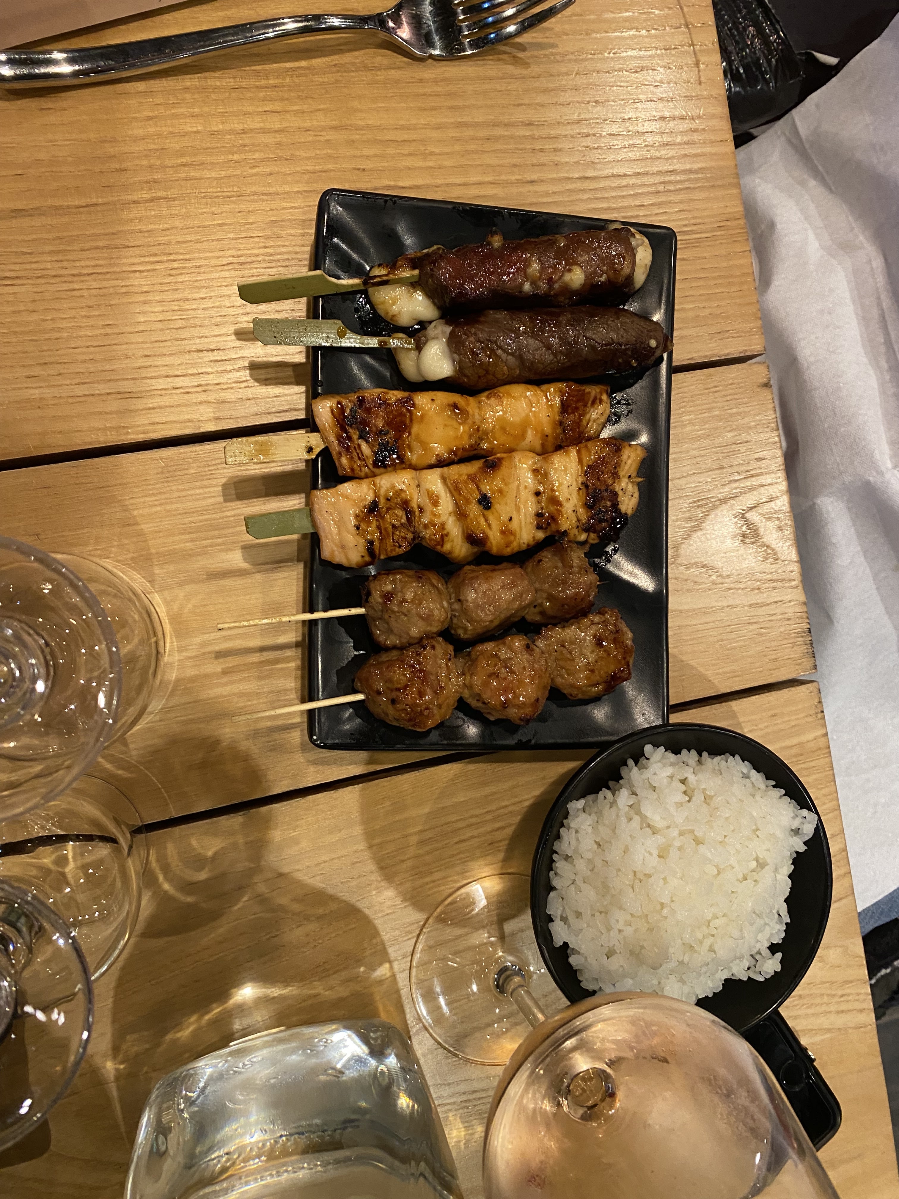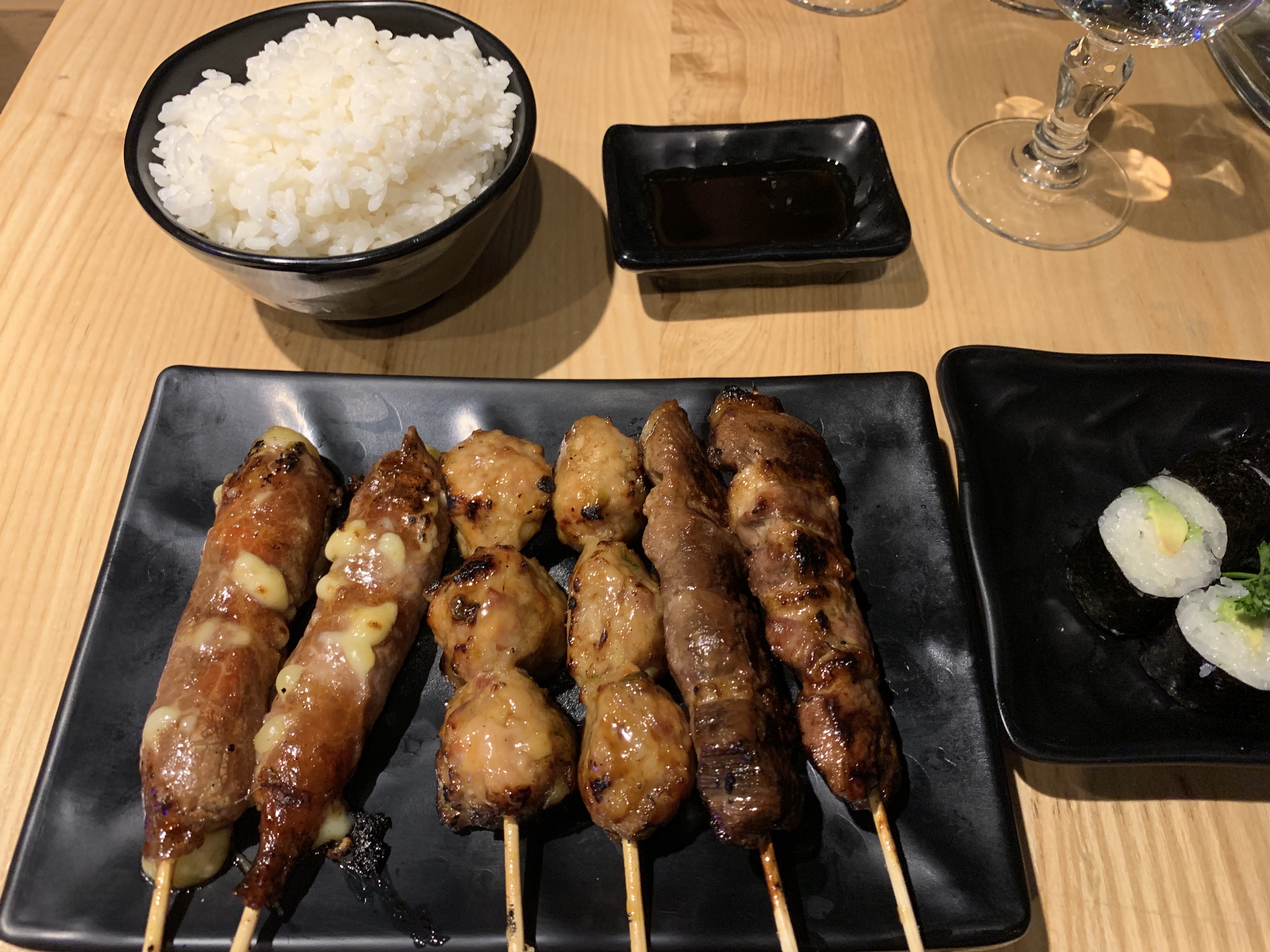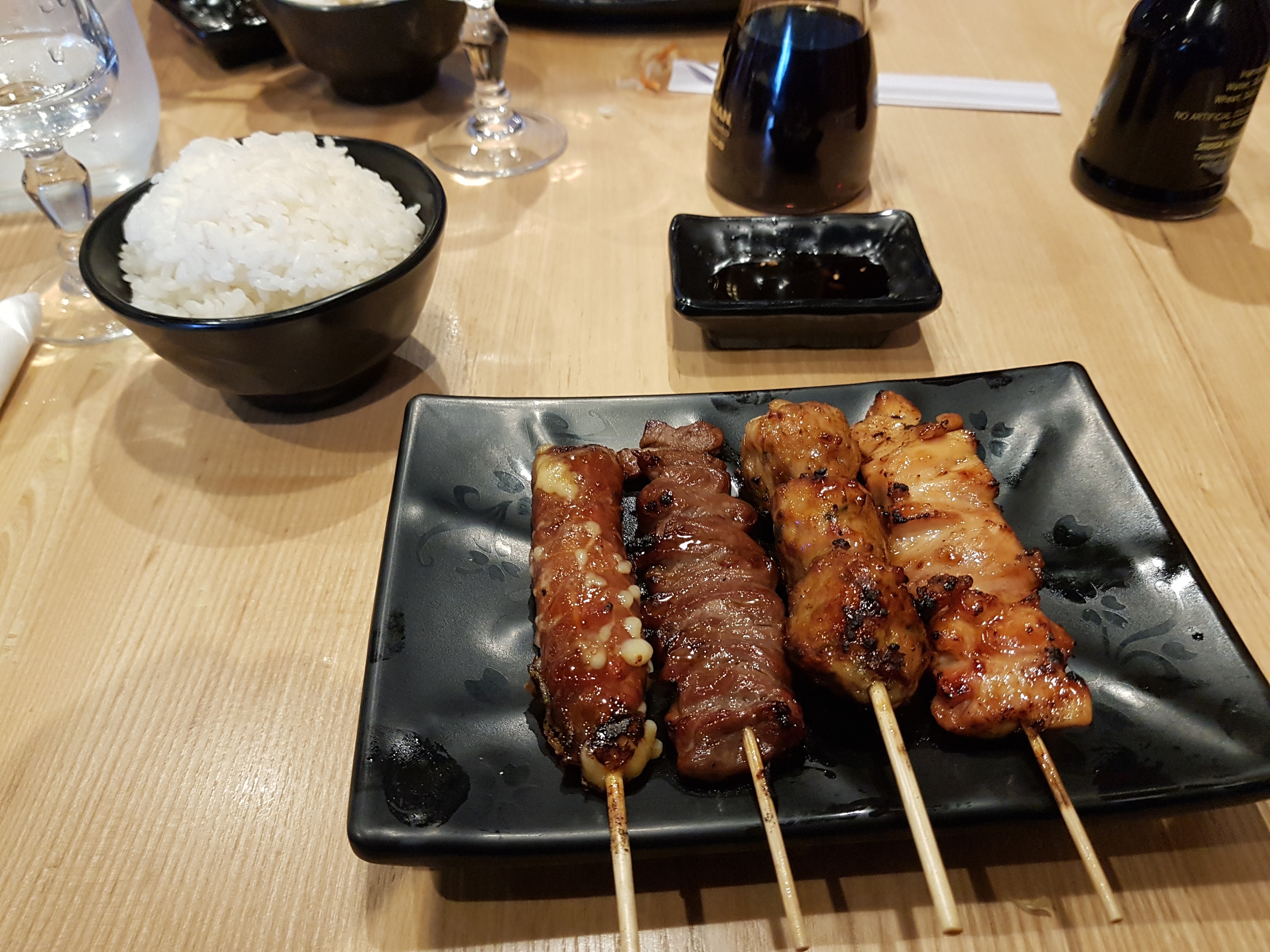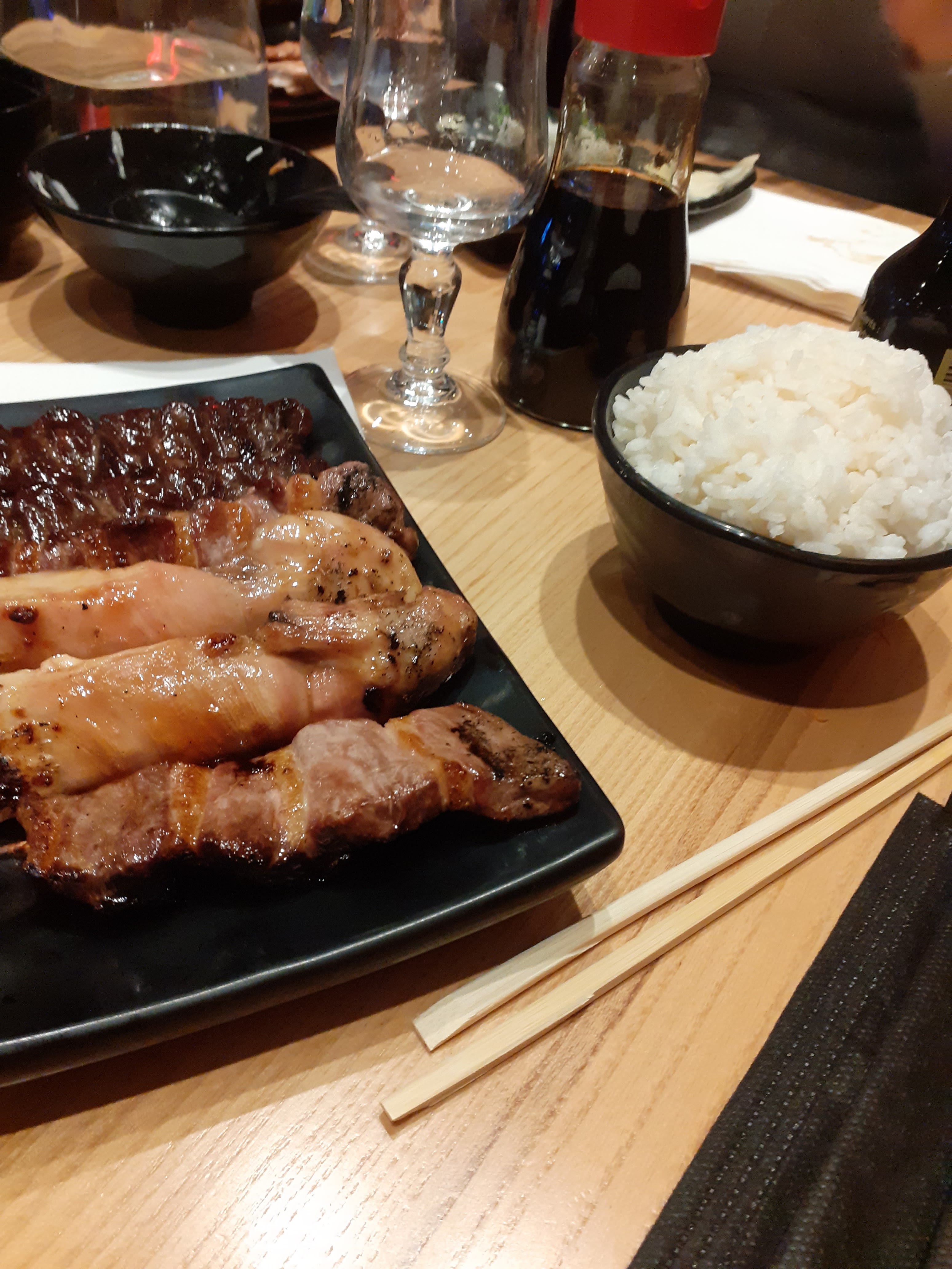 Bonne expérience dans l'ensemble, L'ambiance est vraiment sympa, avec une décoration sobre mais classe. Accueil mitigé avec une serveuse assez désagréable lorsqu'on pose des questions sur les plats que l'on souhaite découvrir, alors qu'un autre serveur lui met à l'aise le client. Le repas était la bonne note de la soirée, on a eu les yeux plus gros que le ventre, le Kara-age est excellent, les brochettes manquait quelque peu de cuisson, le riz parfait. L'addition reste raisonnable pour 2 personnes, environ une 50aines d'euro avec 2 cocktails, 2 entrées et 2 plats. On a même droit au petit verre de saké après avoir payé l'addition. À part l'une des serveuse assez désagréable la soirée était sympathique, et le restaurant n'était pas bondé ce samedi soir.
