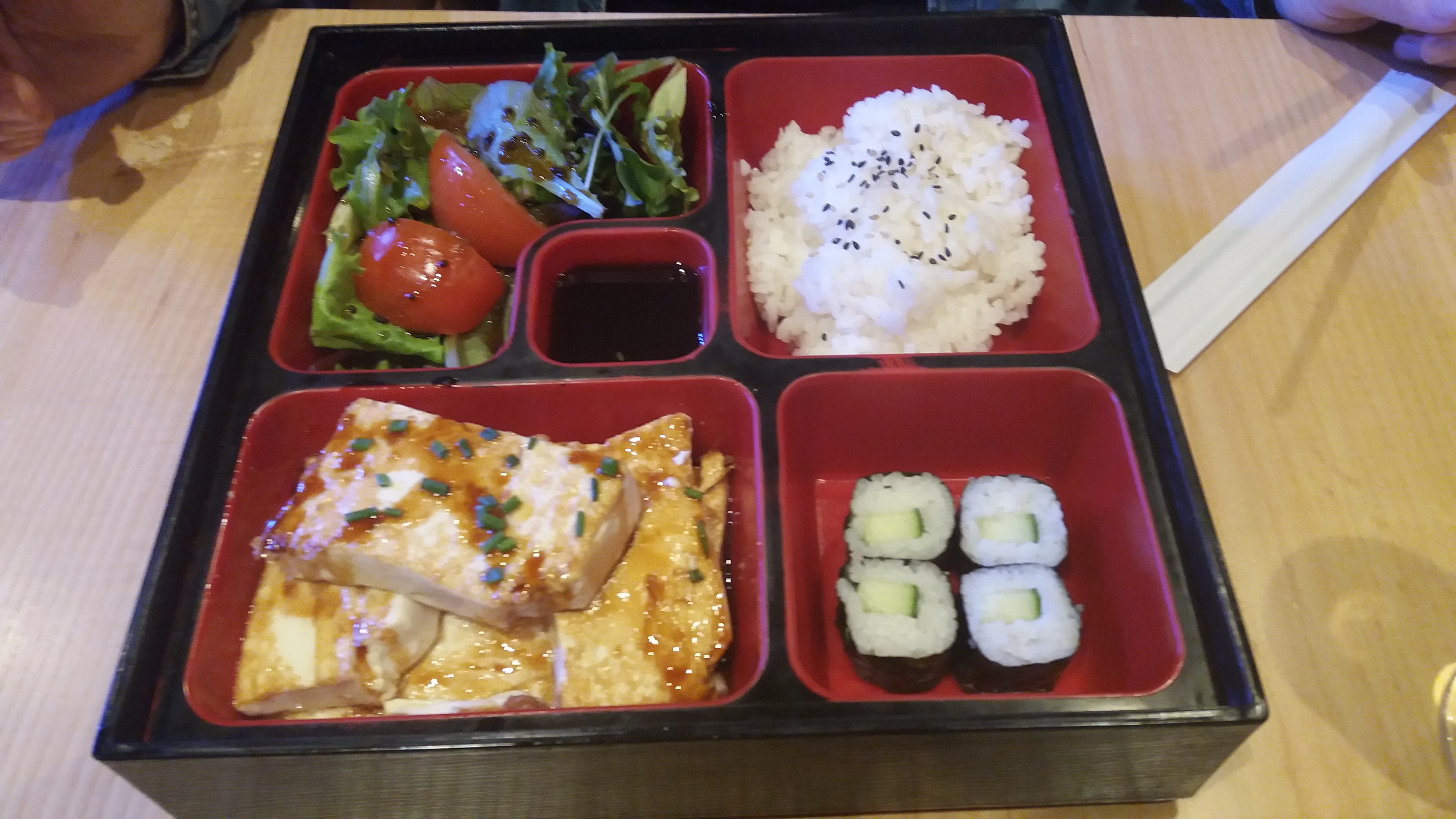 J'ai tenté l'expérience en voyant tous ces commentaires positifs sur le restaurant. Je trouve que les avis sont un peu trop élogieux. J'ai pris un Menu R et des sashimis daurade. Ce n'était pas mauvais du tout, mais dans les California saumon/avocat par exemple ont 95% de riz, le saumon était quasiment inexistant et il manquait de l'avocat dans certains. Expérience décevante, vue les avis je suis certaine qu'ils peuvent faire mieux. A essayé de nouveau dans le doute