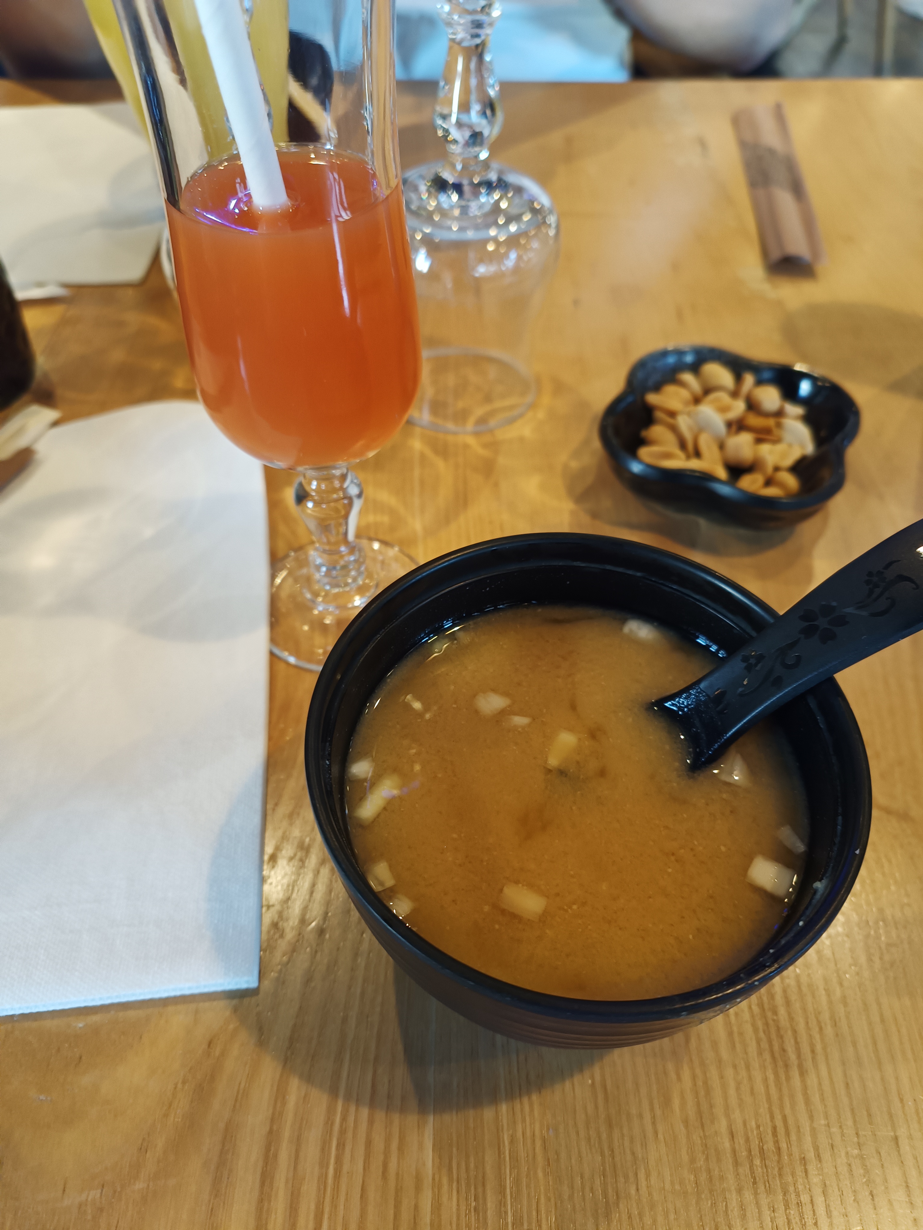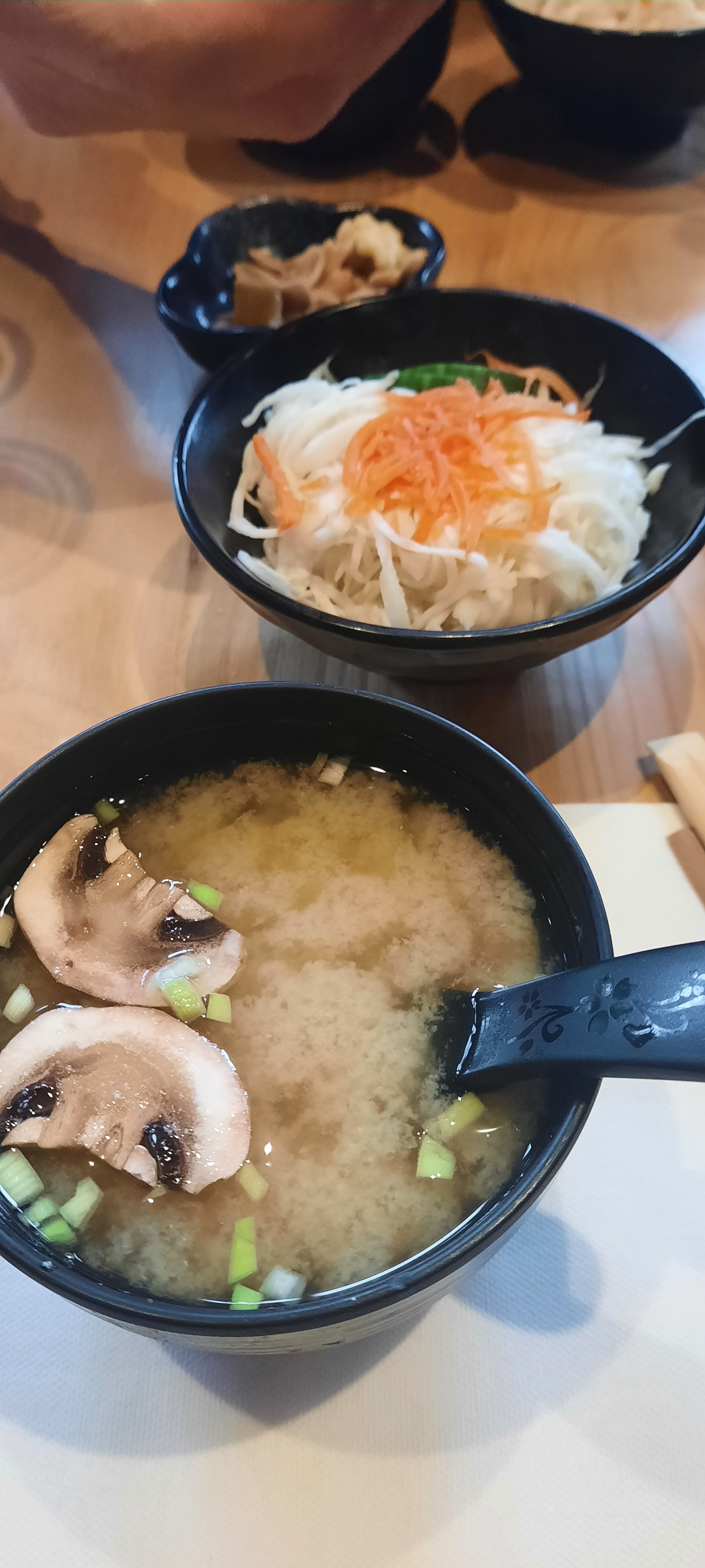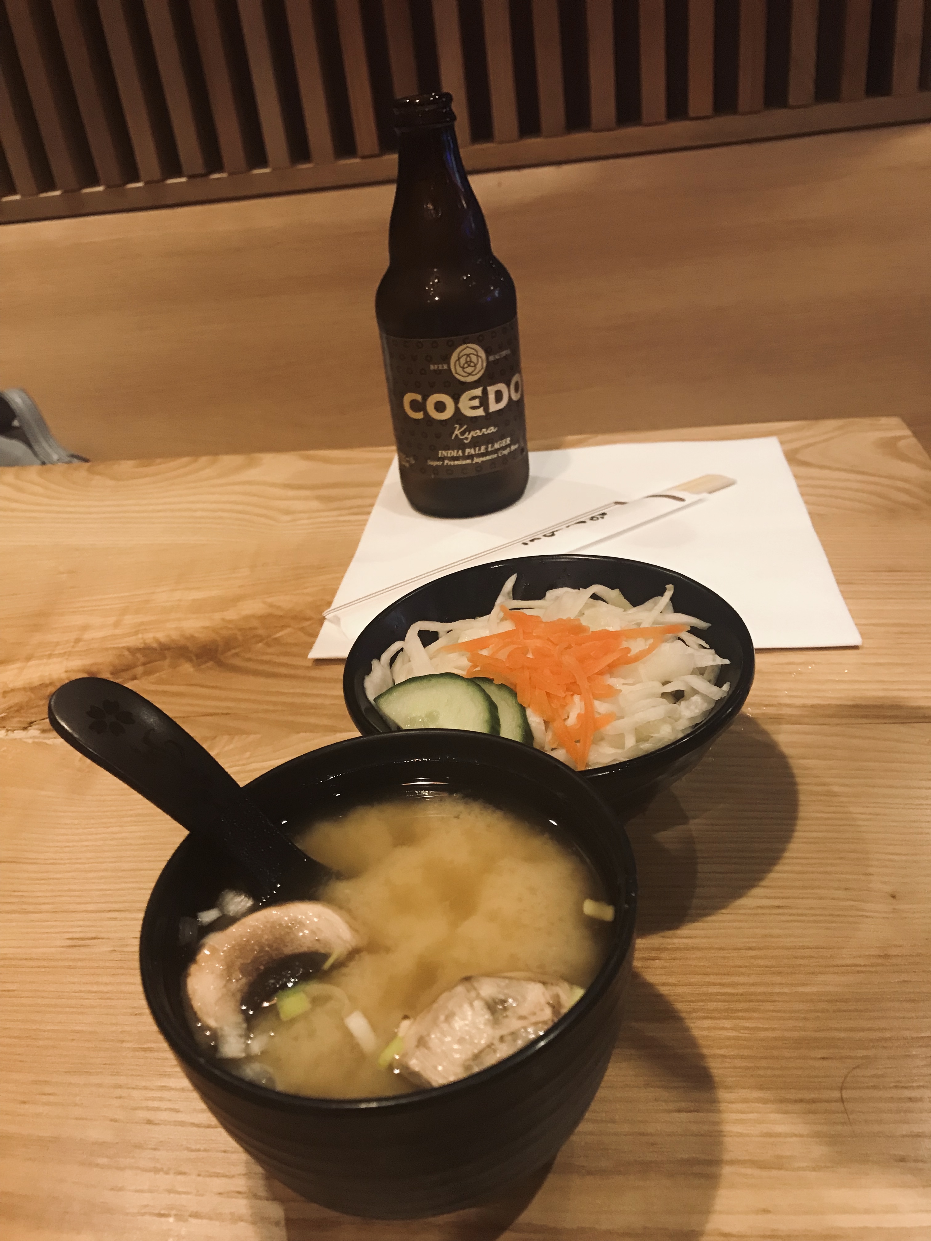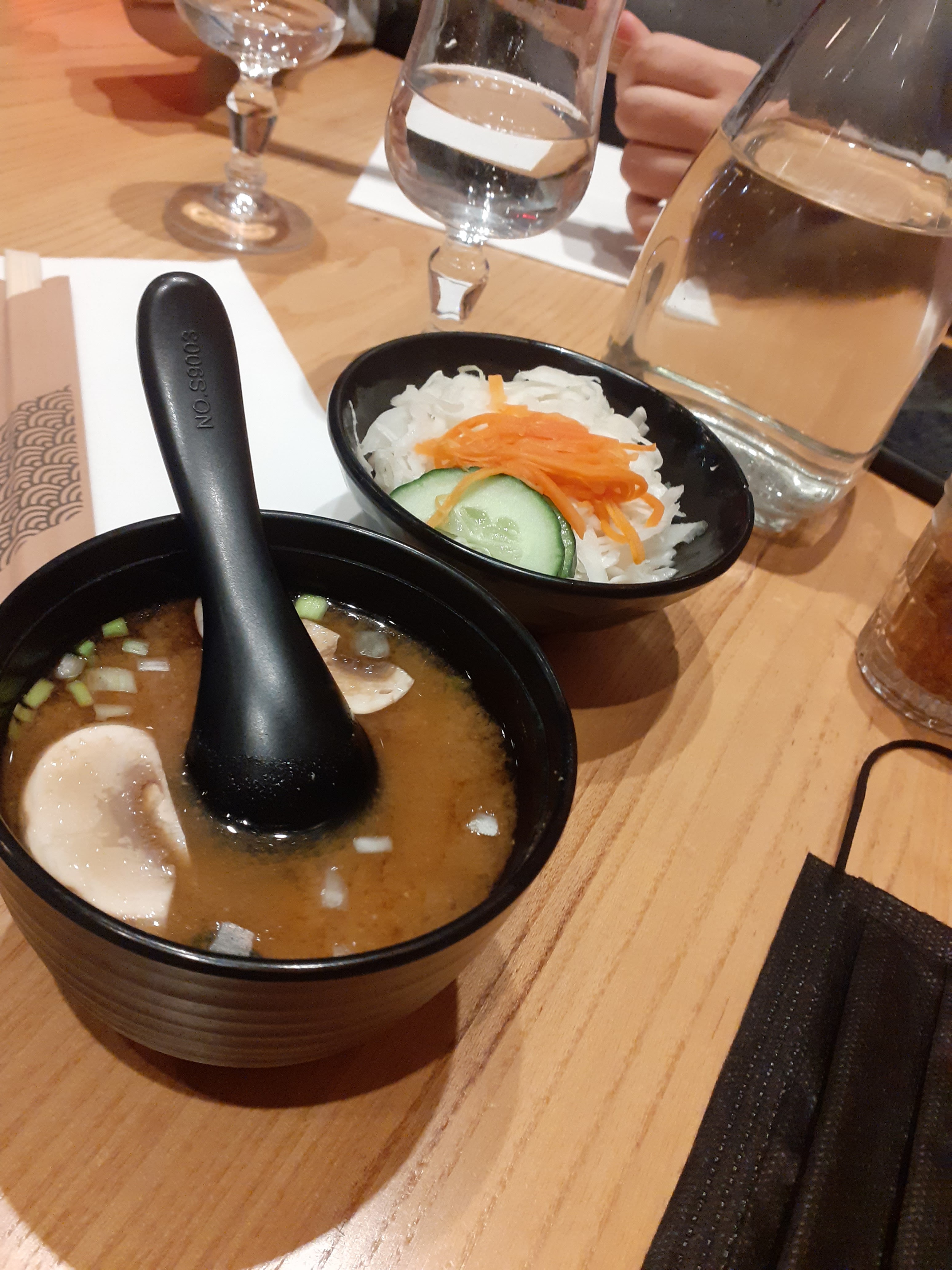 Je n’ai jamais vu une attente si longue pour amener 3 soupes miso et 2 bouts de choux blanc : + de 30min !!! Je n’ose même pas imaginer l’attente pour le reste du repas, je vous tiens au courant