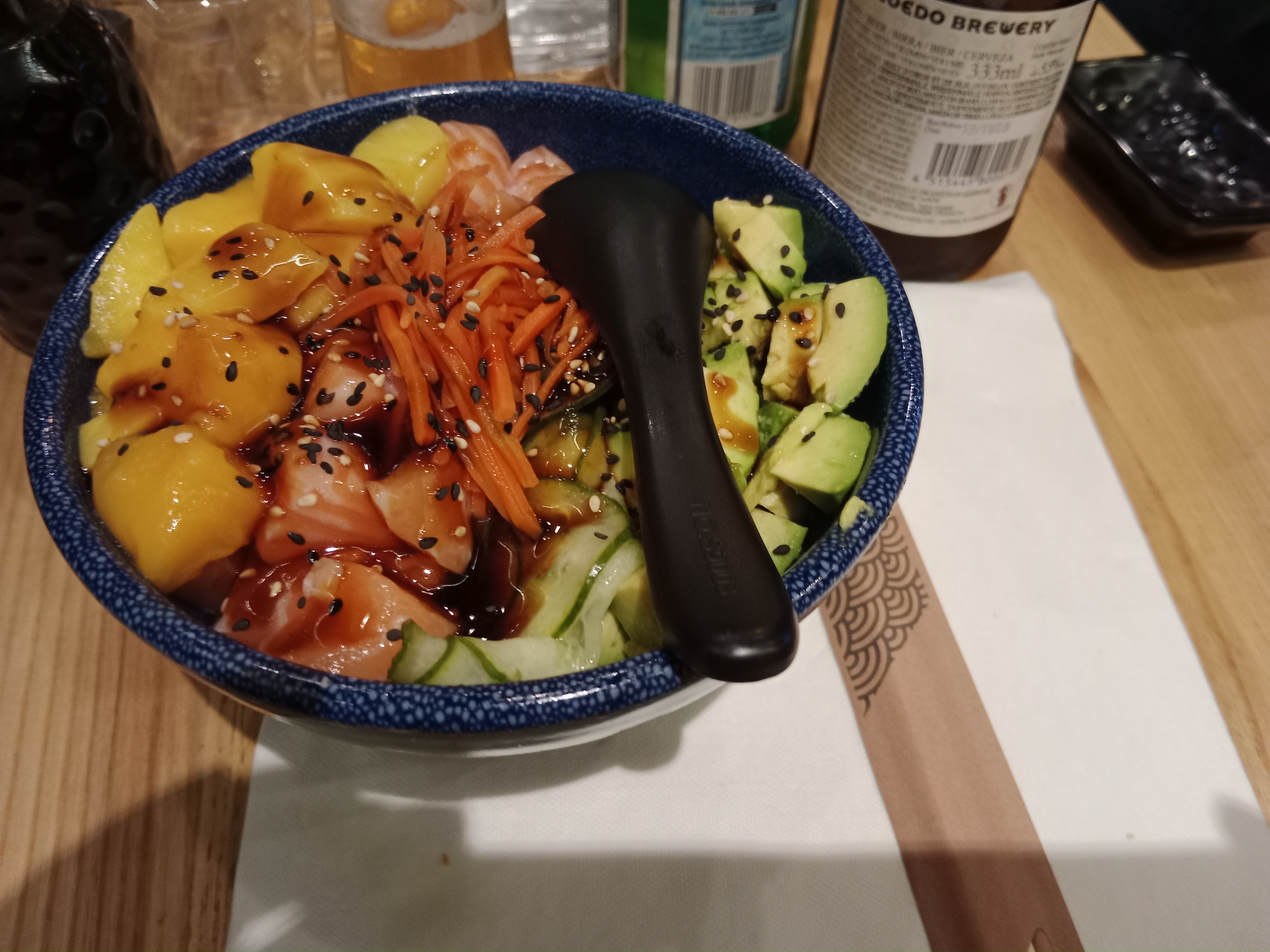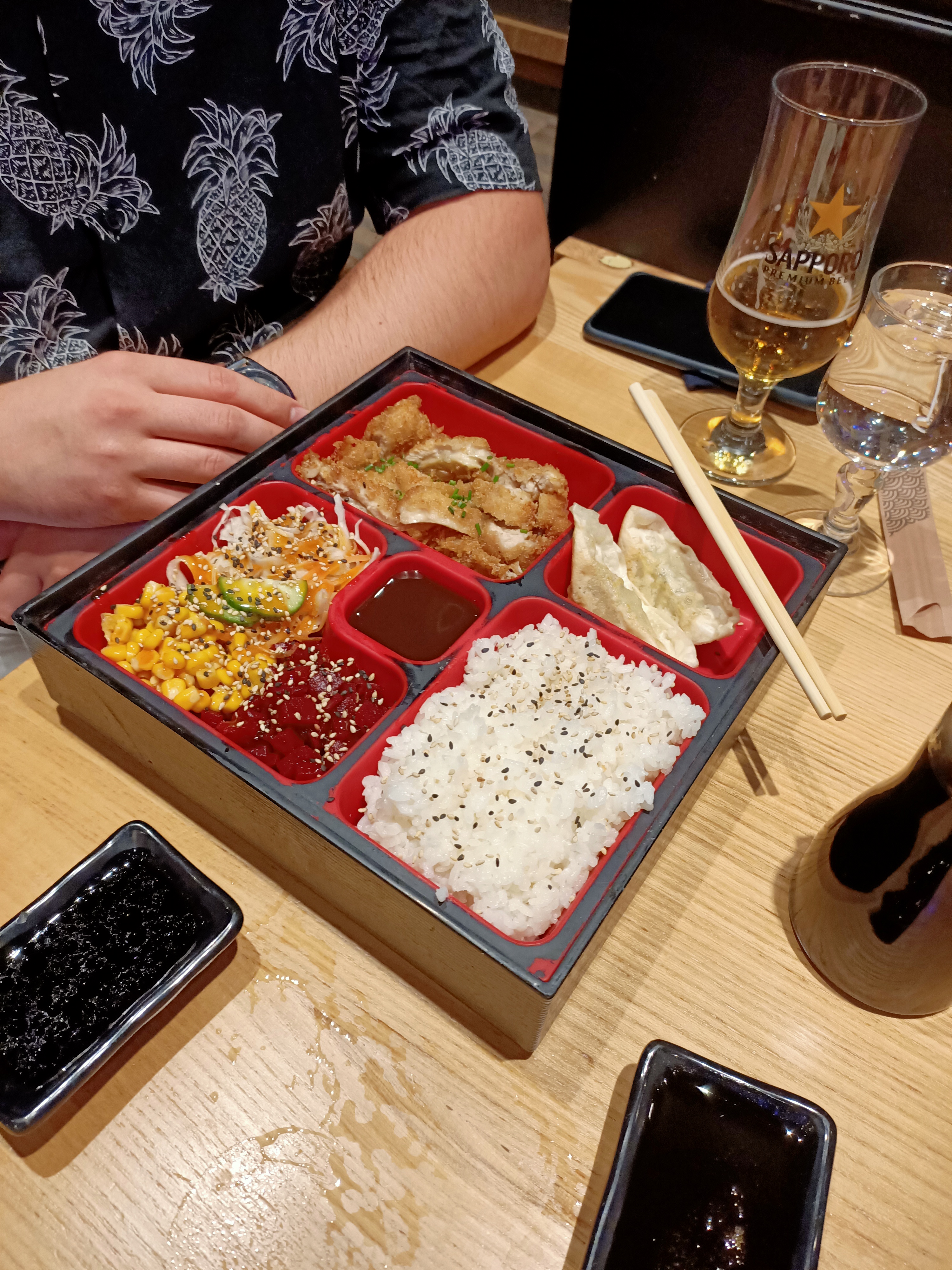 Je n'aime pas payer plus que ce que j'ai consommé: une bière japonaise facturée alors que je venais de signaler que je n'en avais pas commandée ! on va me dire que j'aurai dû vérifier le ticket sur place ... on ne peut vraiment plus faire confiance. Pour le repas : au serveur qui te colle et te demande si c'est bon toutes les 2 min tu as envie de dire : NON c'est de la bouffe industrielle et en plus te viens de me poser tous les plats qui vont refroidir ducon ...