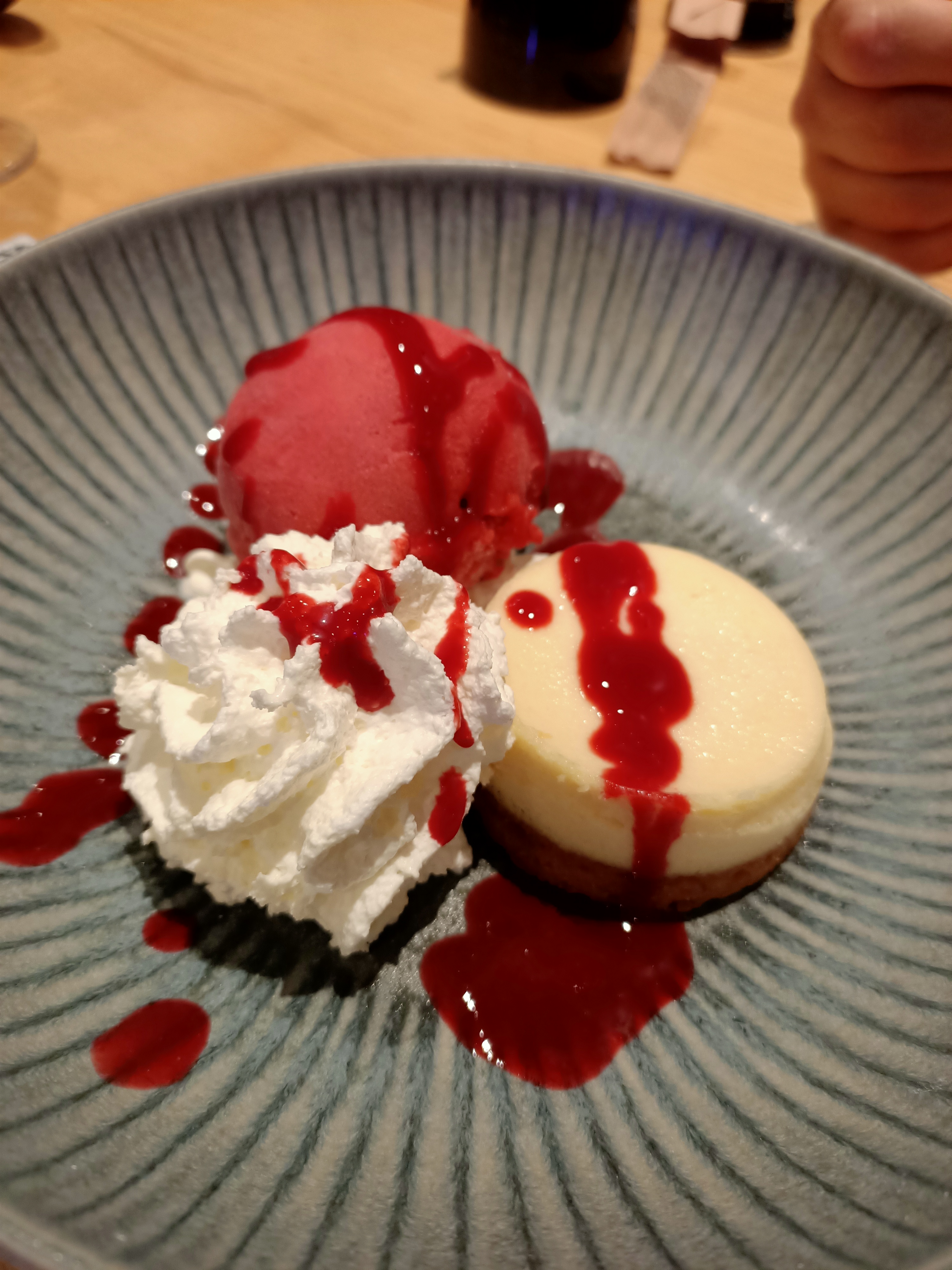 Très bon repas mais nous avons été agressé par une sorte de chef de rang qui nous trouvait un peu long à choisir. Il aurait été plus simple que d emblée on nous prévienne que la cuisine allait fermer dans peu de temps.