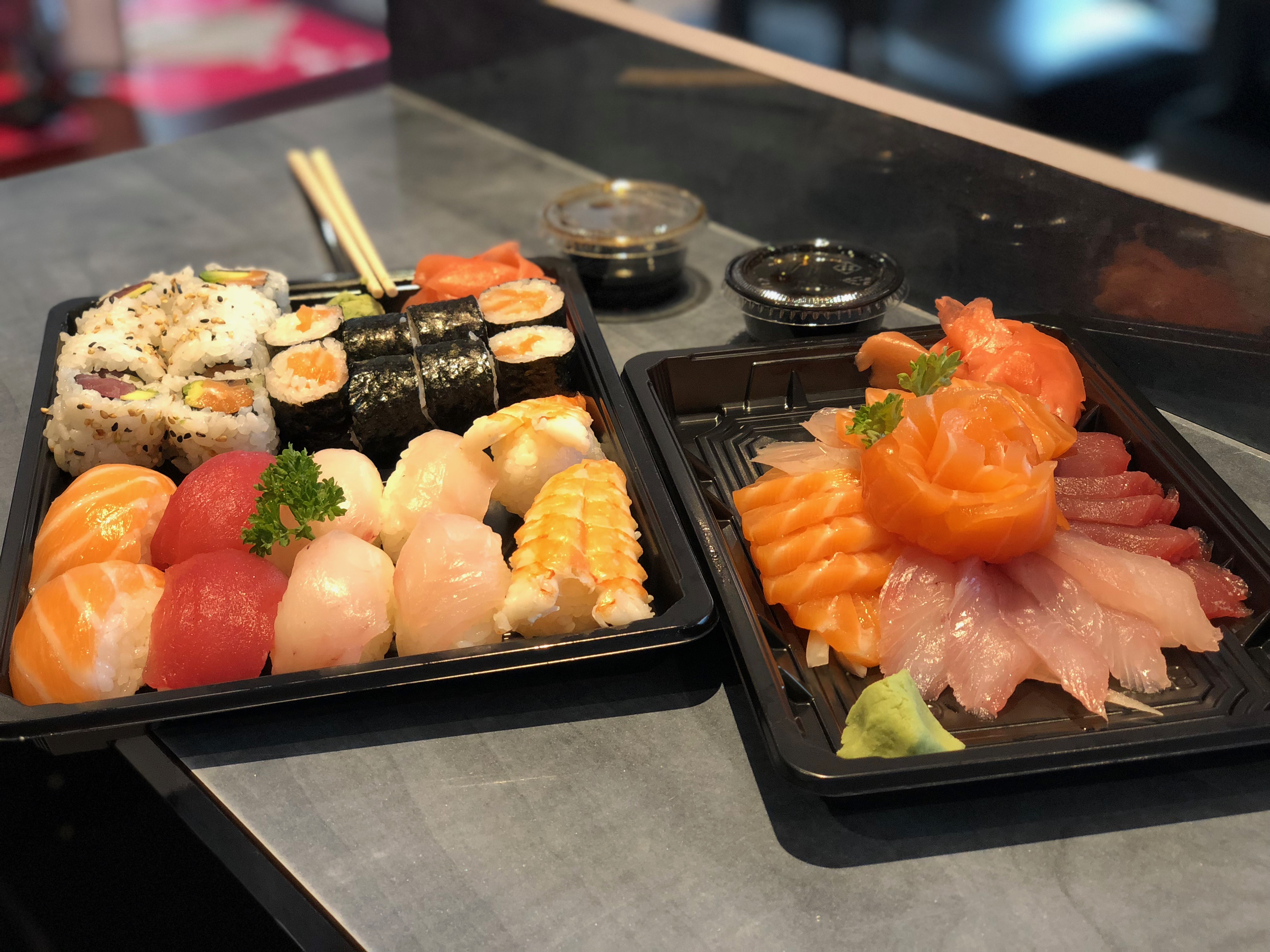 Très bon sushis et makis à emporter, mais la fraîcheur des préparations n'est pas au rendez-vous car les commandes attendent sur un buffet et non pas dans un frigo, j'habite à moins de 10min et mangé mes sushis et makis à température ambiante n'est pas top.