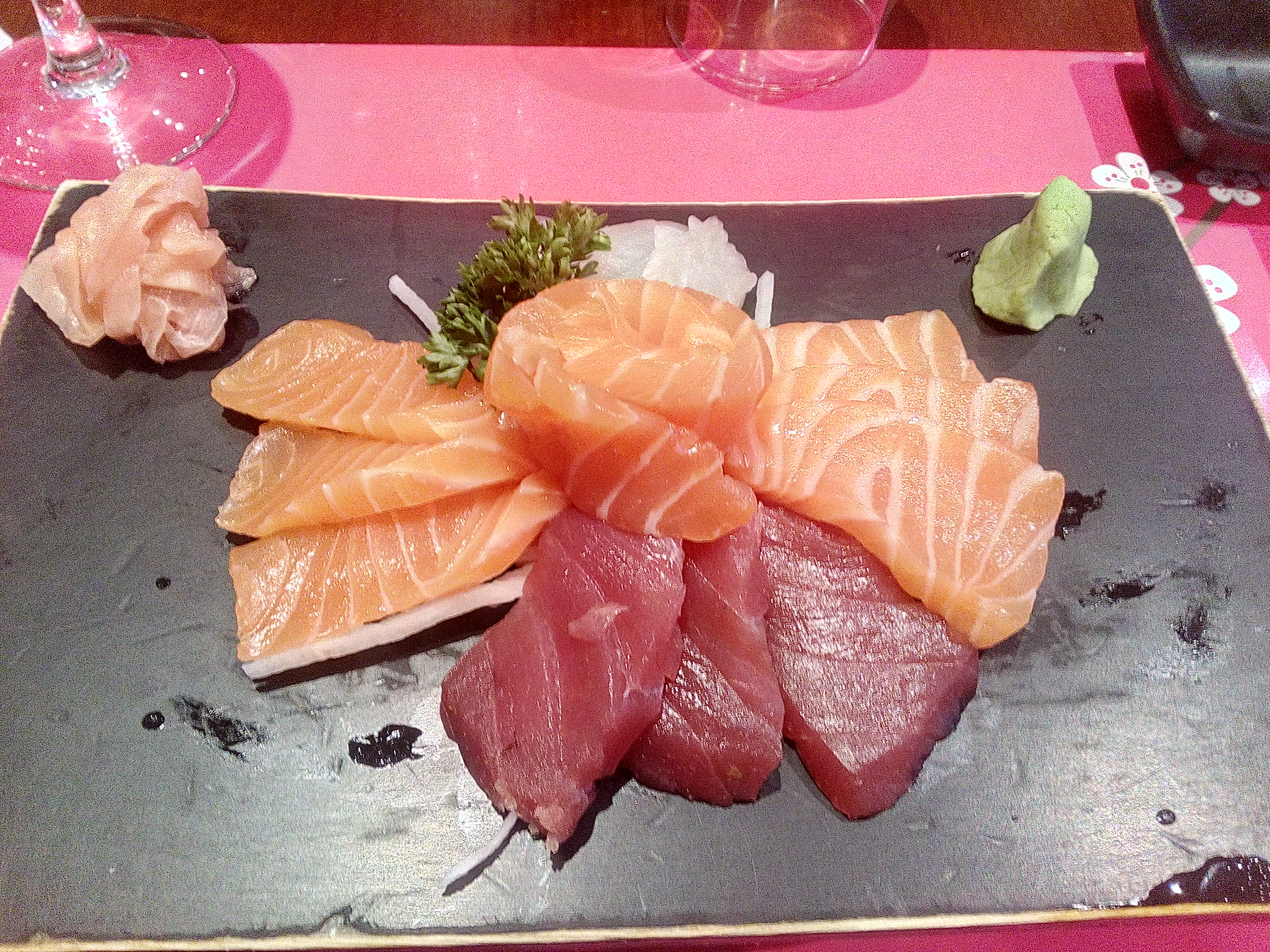 Nous avons bien et suffisamment mangé. Le poisson était frais et bon. Nous avons été très bien accueillis et la serveuse était très agréable. La qualité était bonne pour un rapport qualité prix peut être un peu trop élevé. Pour ceux qui se poseraient la question, on est pas une démonstration de l'étendue et de la finesse de ce que peut être la gastronomie japonaise. D'ailleurs ce n'est absolument pas la prétention de ce restaurant qui sait rester simple. C'est bon et c'est déjà beaucoup. Il est probable que tous les mets proposés ne soient pas maison je n'ai cependant pas posé la question. Ce restaurant convient pour un repas sans occasion particulière.
