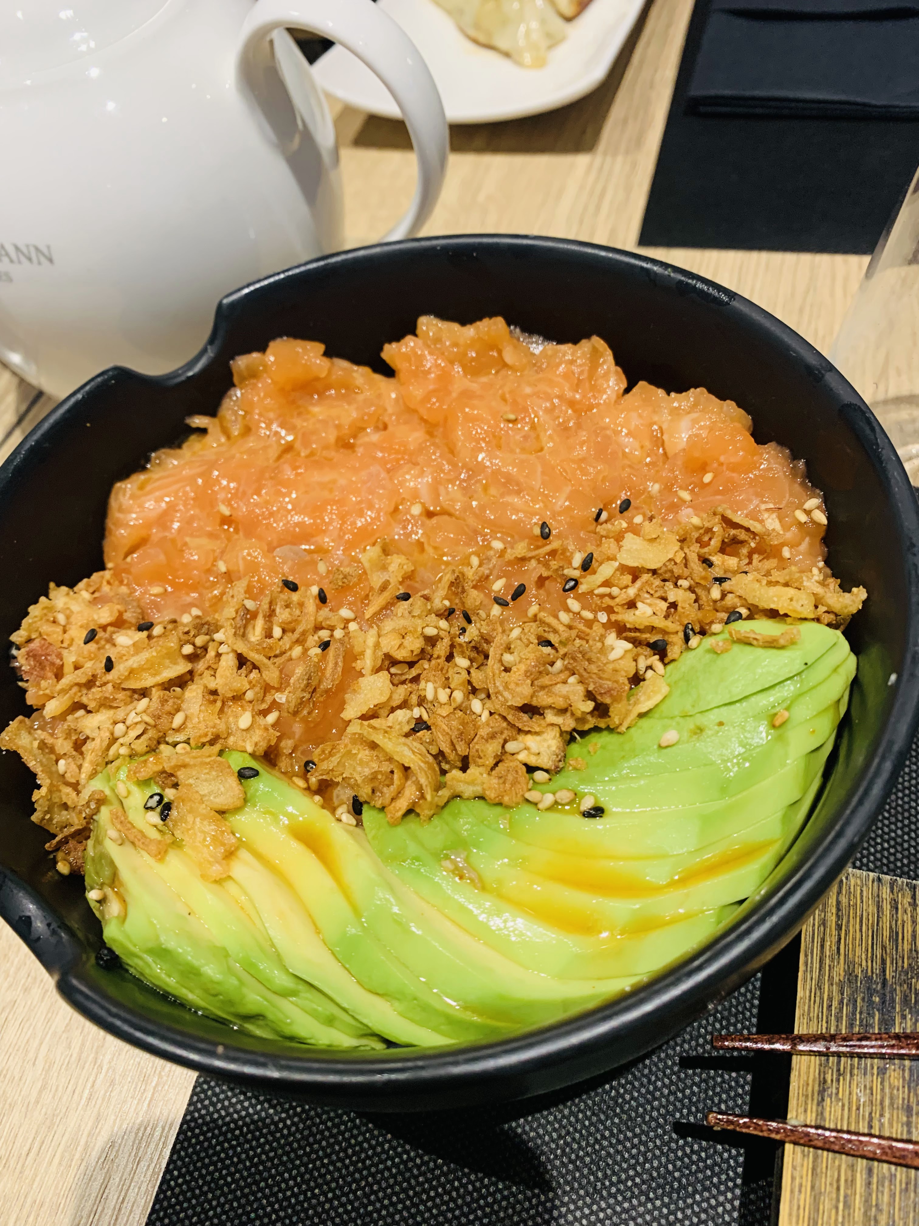 Nous avons essayé ce restaurant à midi, quelle déception par rapport aux commentaires précédents ! J’ai pris un Chirashi saumon : avocat dur comme de la pierre, n’étant pas mûr il avait un mauvais goût. La serveuse m’explique qu’ils ont des soucis avec leur fournisseur …. L’avocat étant un élément principal du Chirashi saumon je ne comprends pas qu’ils proposent encore ce plat … je pense qu’ils ont eu également des soucis avec le saumon aujourd’hui car il était extrêmement gras certains morceaux n’étaient composés que de blanc … Malgré mes remarques et la constatation partagée avec les serveuses, personne ne m’a proposé de changer de plat, un dessert ou même un café ! Chirashi a éviter et sens du commerce à développer !!!