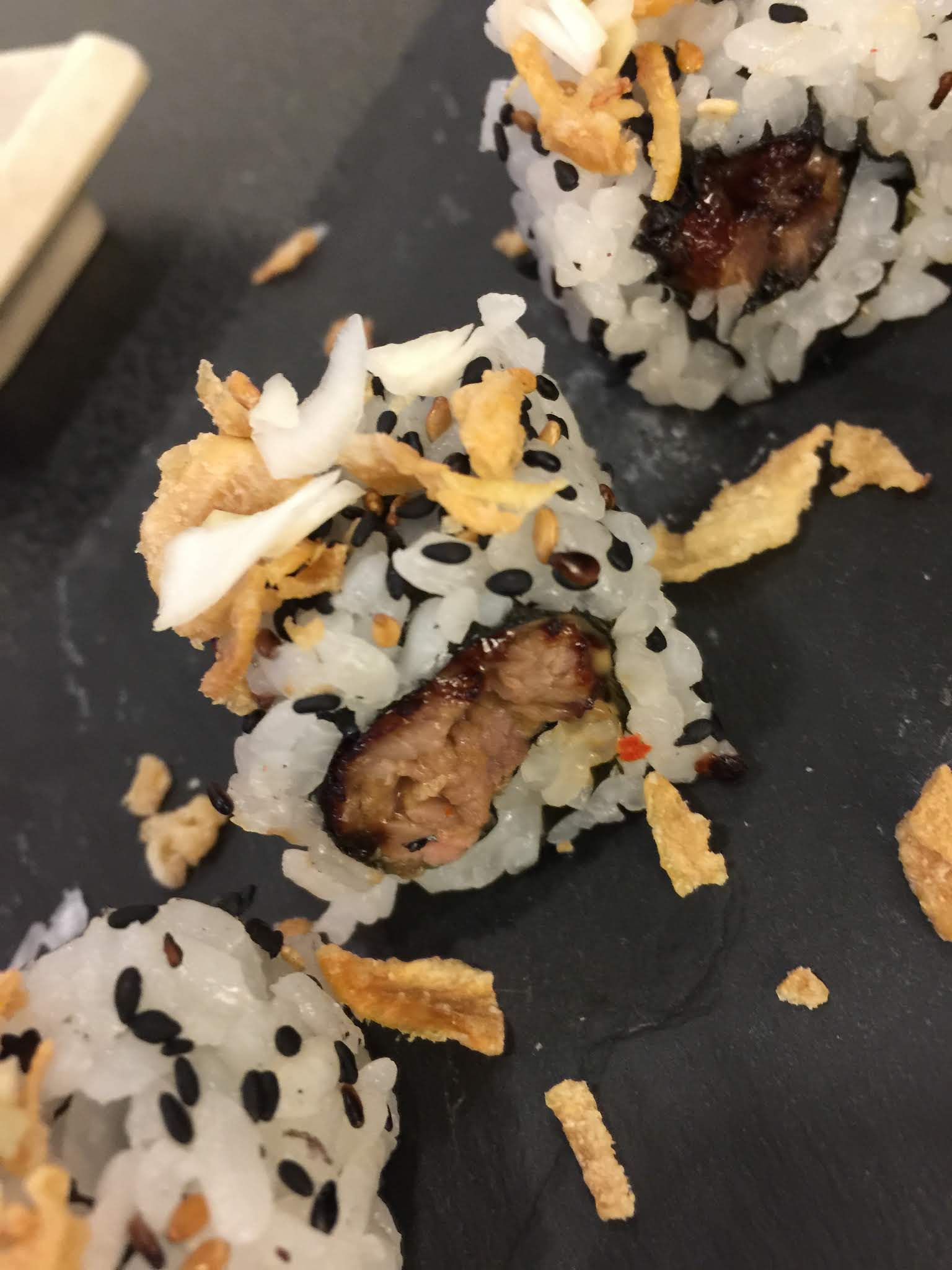 Cher pour ce que c'est... 1 EUR de supplément oignons frits au dessus pour au final en avoir 2 sur chaque sushi